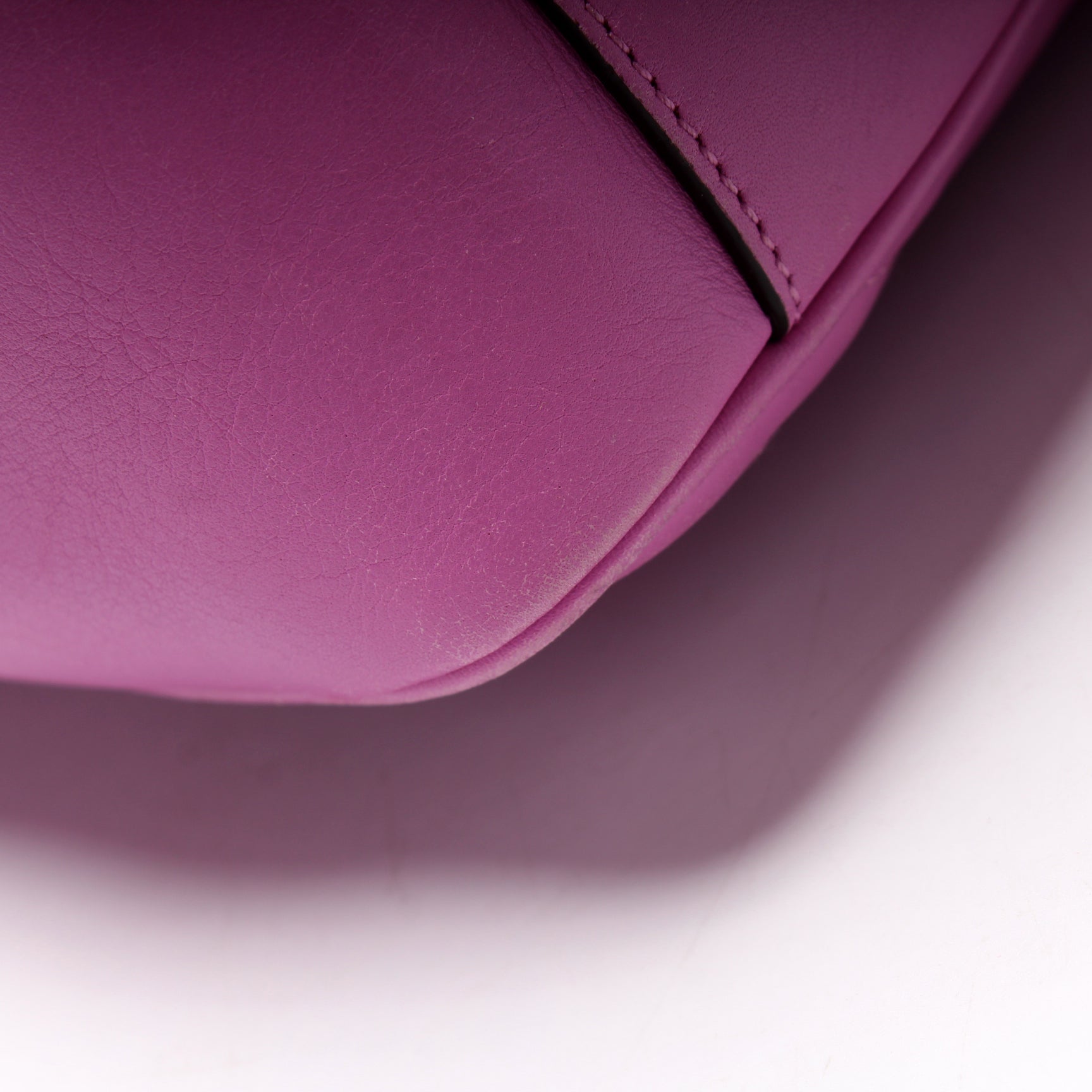Interior: The interior shows light staining throughout. There are minor scratches under the flap. The interior features one zip closure pocket and one open pocket.