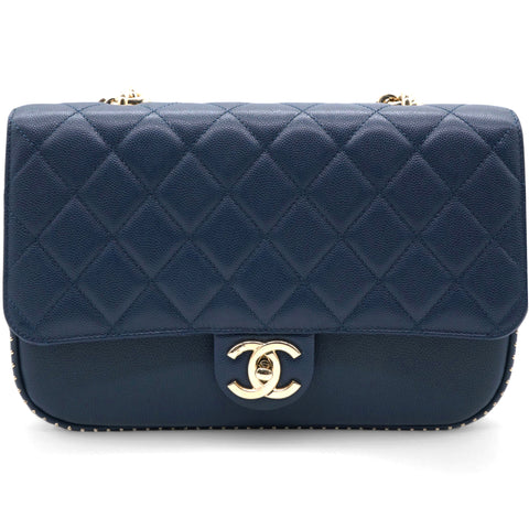 Chanel Matelasse Coco Mark Chain Caviar Shoulder Bag Navy