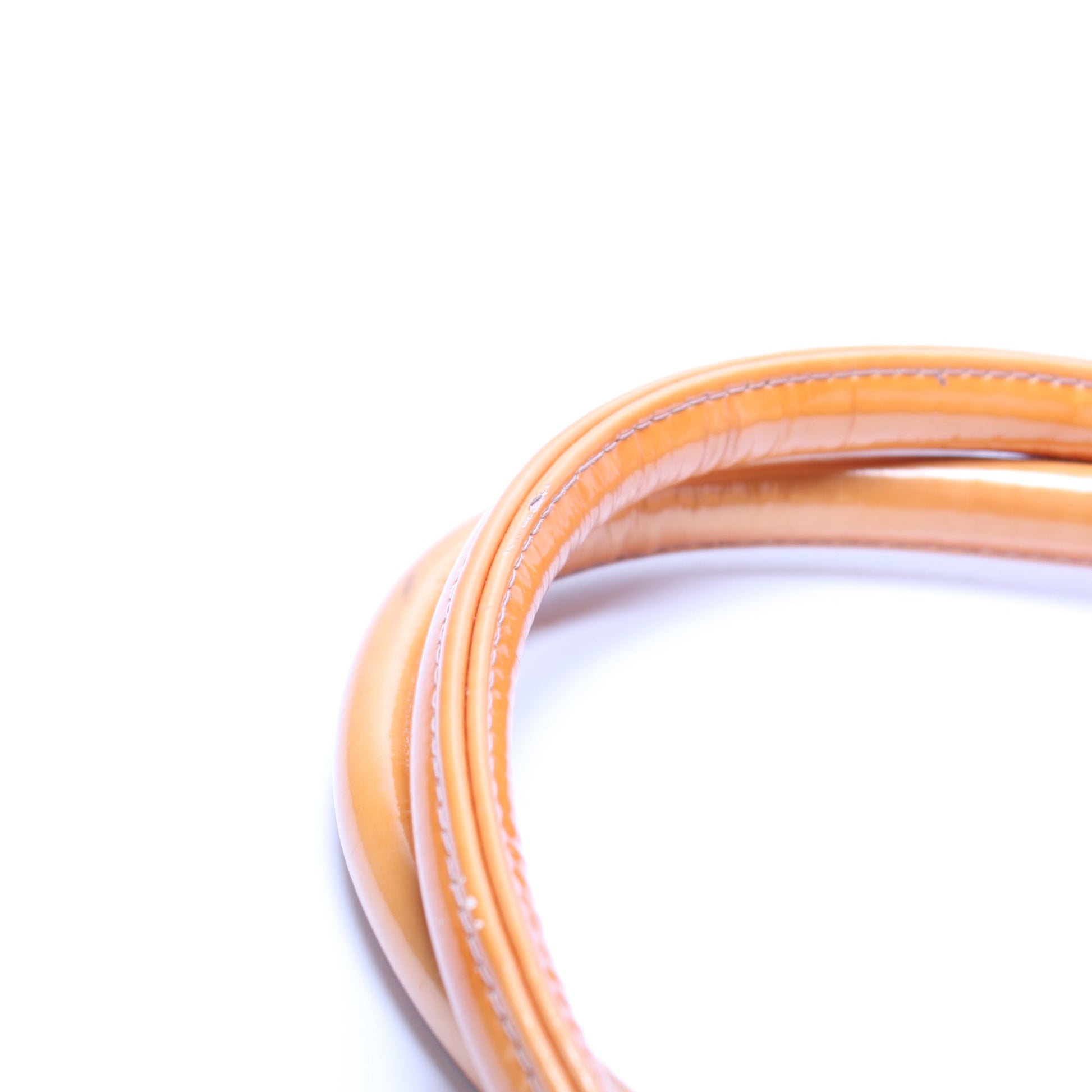 Exterior: The exterior leather has minor discoloration and wear. The corners show minor wear.