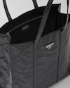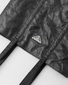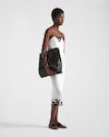 This bag with casual yet classic allure is made of nappa leather with a glossy effect and natural finish. The hand-made wrinkled effect contrasts with the structured and rigid design concept, reinterpreting an everyday object to be worn without constraints. Presented for the Spring Summer 2023 collection, the bag that recalls an accessory presented in 2001 is embellished with the enameled metal triangle logo.