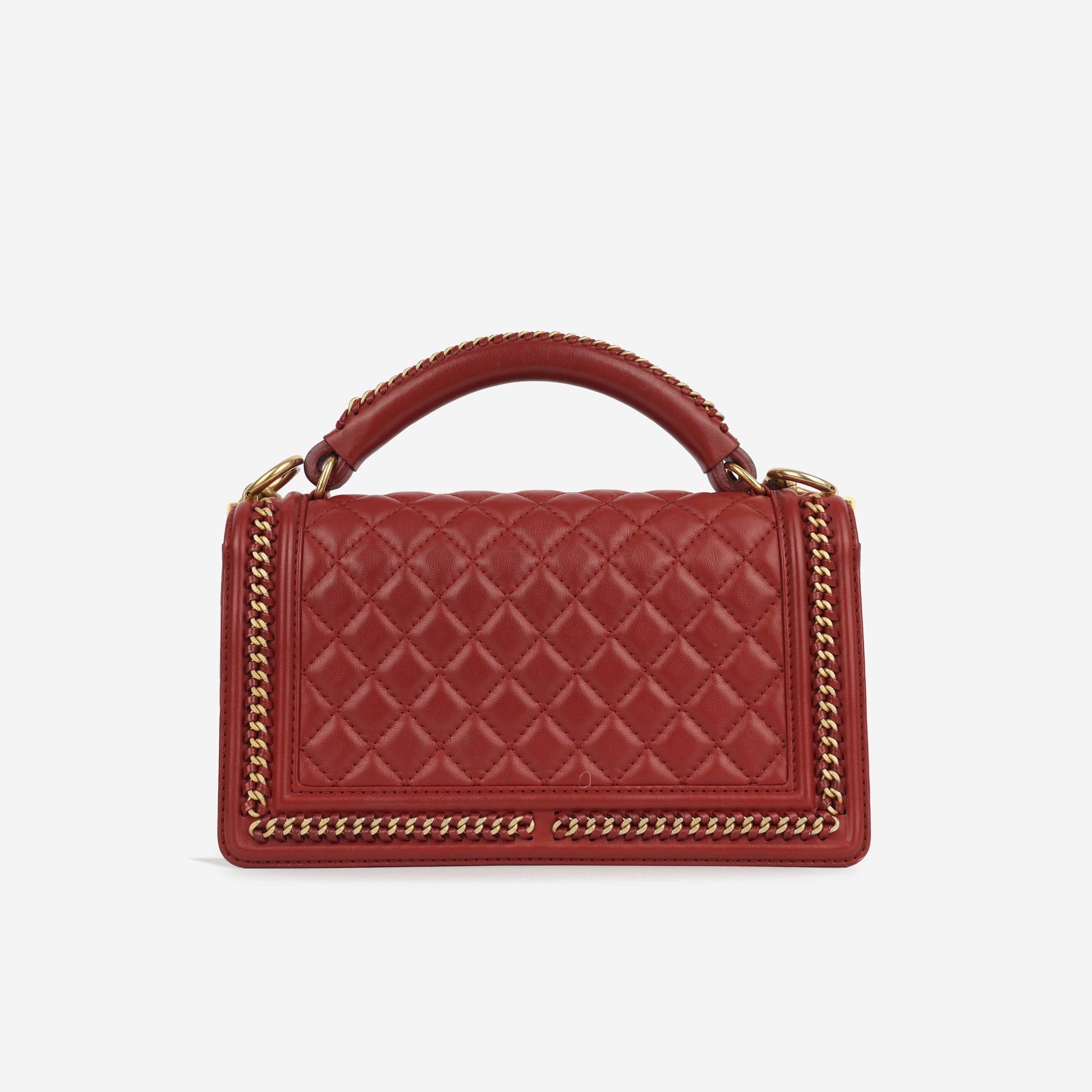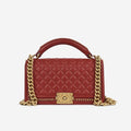 The ‘Boy’ bag, first introduced in 2011 and named after Coco Chanel’s lifetime love, is part of their iconic collection. With a top handle, this particular edition is crafted in red quilted lambskin leather and can be worn with the chain doubled up over the shoulder for an evening look or wear cross body for a more casual style.