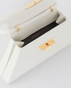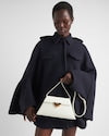 In an open dialogue between past and present, the Fall Winter 2023 collection writes the rules of new elegance. The rigid lines with a graphic quality reinterpret retro references, introducing innovative design solutions. The handbag made of brushed leather, an iconic material of the brand, is defined by a sleek, geometric silhouette that inspires sophisticated gestures. The triangle logo is transformed into a refined detail that embellishes and closes the accessory, consolidating the link between tradition and modernity.