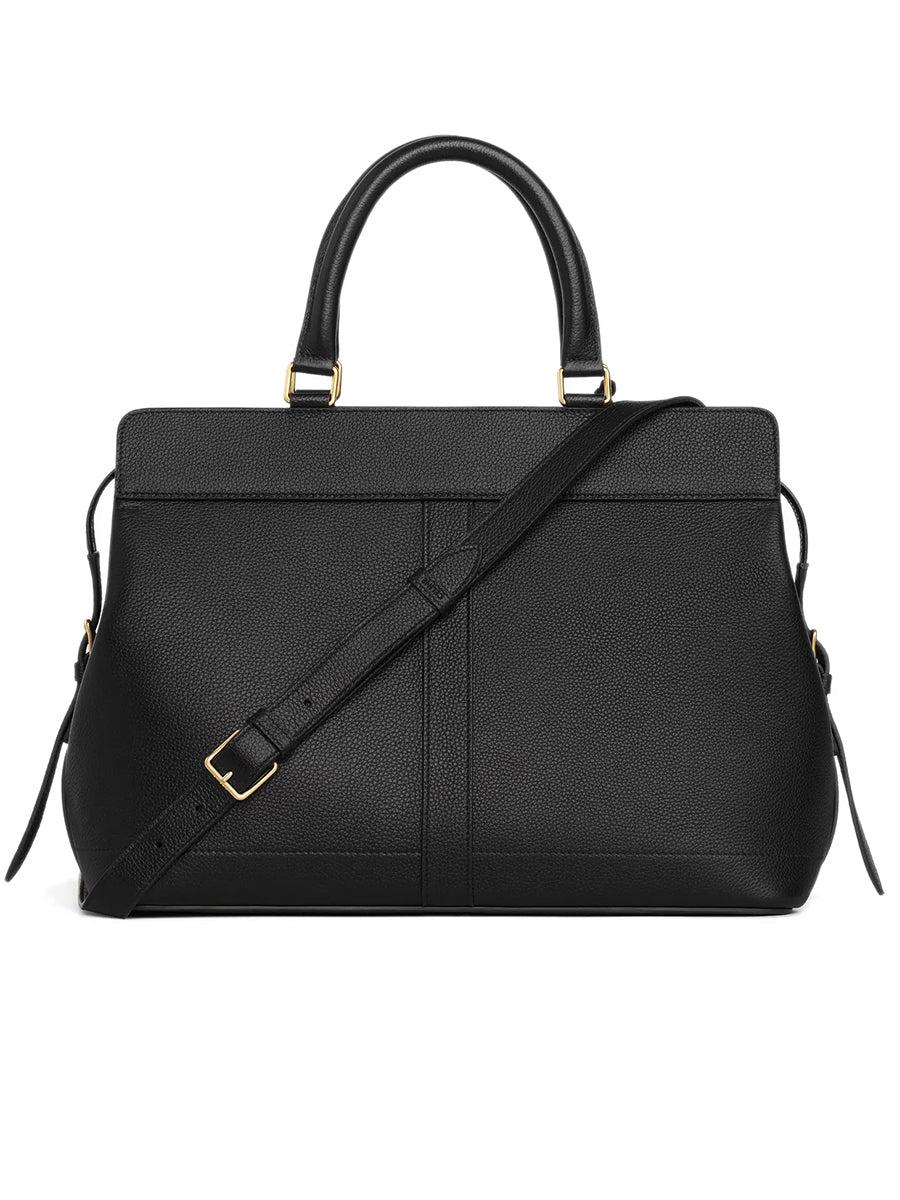 Medium Cabas de France Bag in Grained Calfskin Black