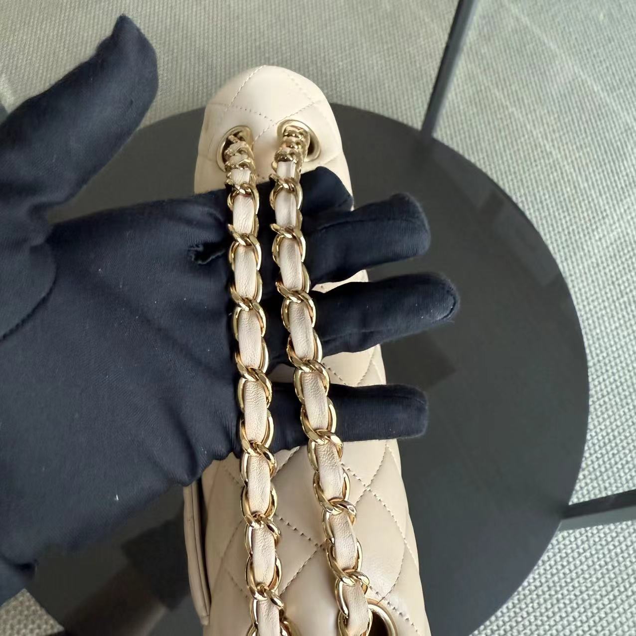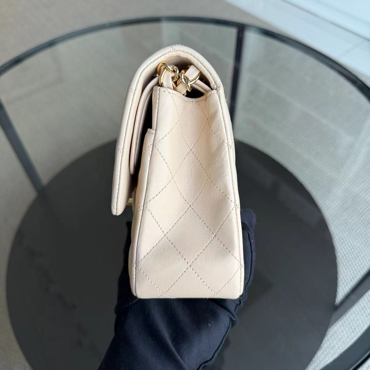 Medium Classic Flap Lambskin Quilted Beige Golden Hardware Series 14