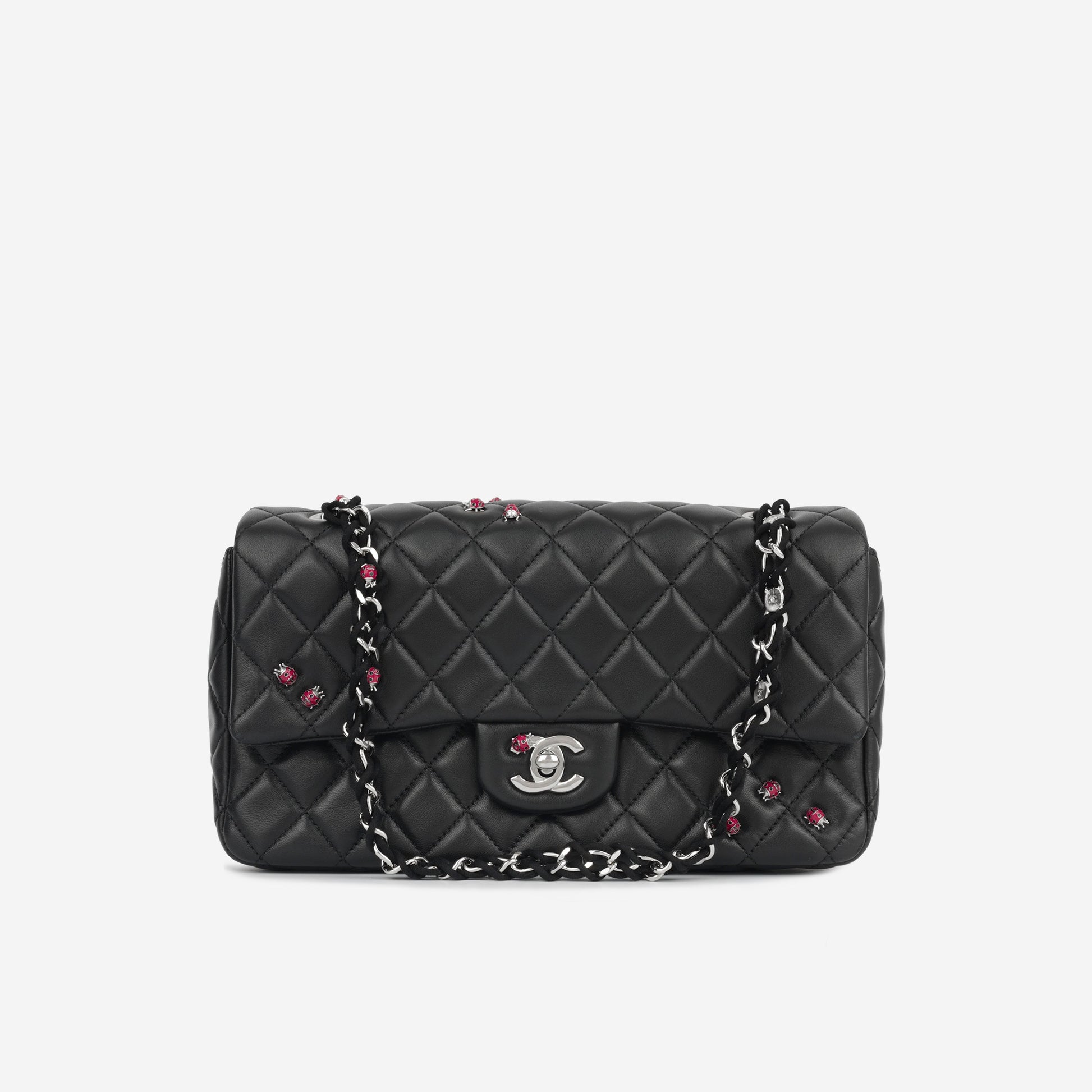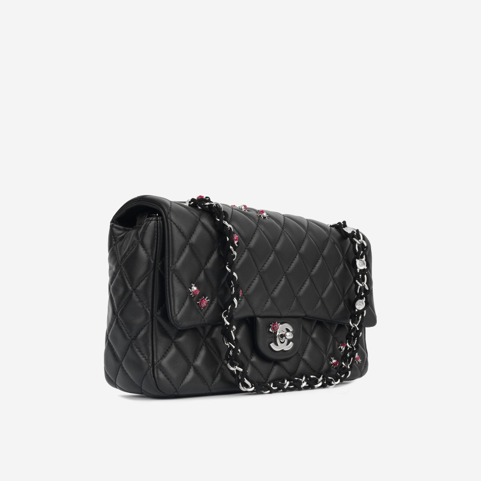 Elevate your style with the Chanel Limited Edition Ladybug Embellishments Bag, a true masterpiece crafted from exquisite lambskin adorned with charming silver hardware. This exclusive design showcases meticulous attention to detail, featuring delightful ladybug embellishments that add a touch of whimsy to your ensemble. The silver hardware enhances the sophistication of the bag, creating a perfect blend of luxury and playfulness. Own a piece of Chanel's limited-edition allure and make a bold fashion statement with this unique and enchanting accessory.