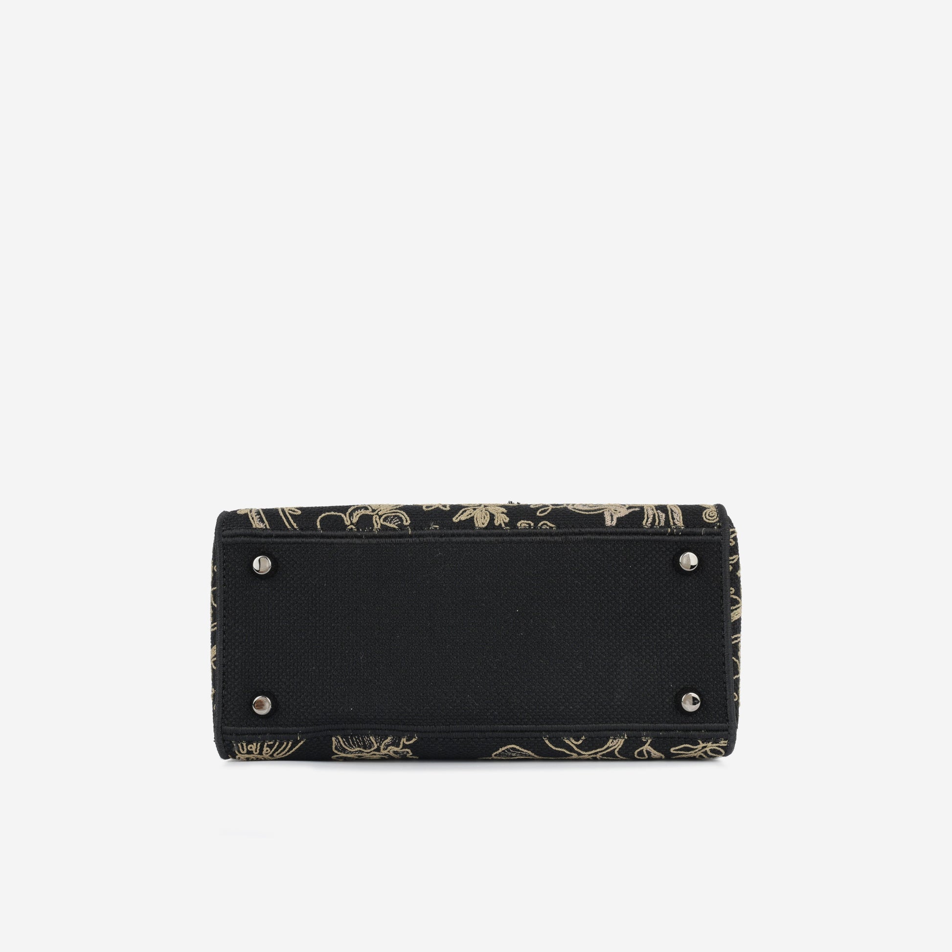 Christian Dior Medium Lady D-Lite Black Embroidered Toile
