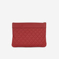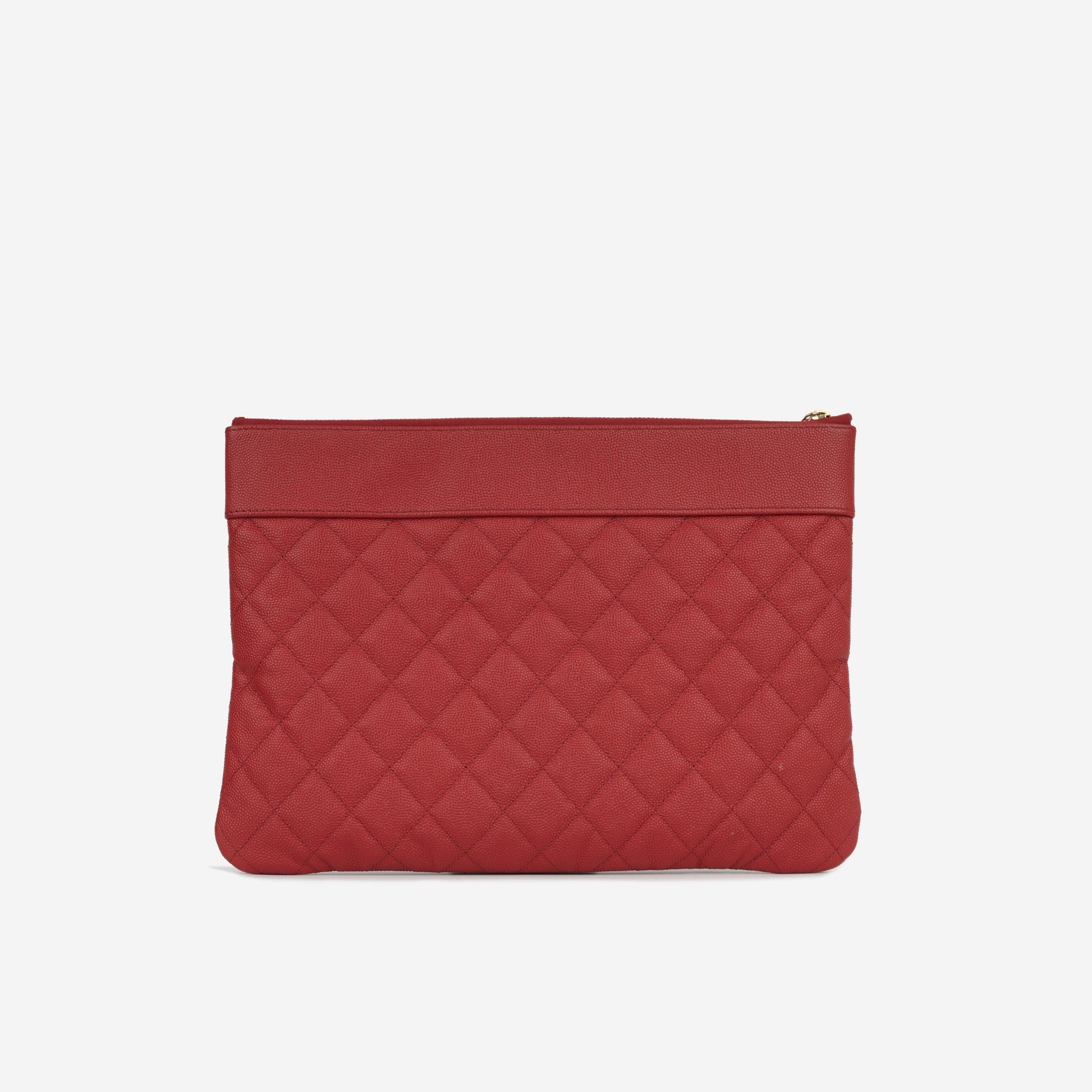 Crafted from quilted red caviar leather, Chanel presents their classy and practical O-case pouch This piece is sleek, stylish and sophisticated. The ideal every day clutch, the O-Case by Chanel is understated and elegant while remaining timeless and fashion forward. The beautiful shade of red can be worn throughout the year, and the champagne gold-tone hardware is the iconic choice to make to stand out from the crowd.