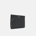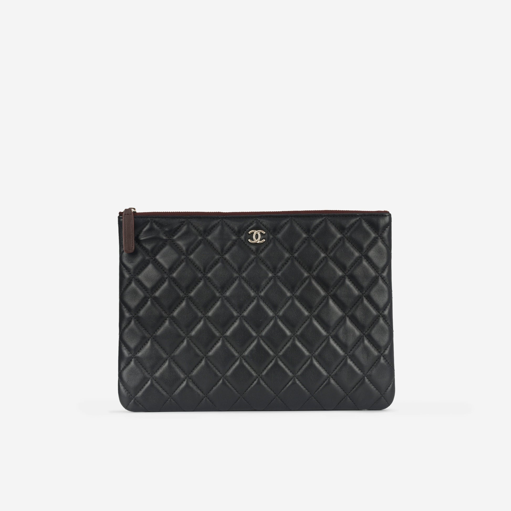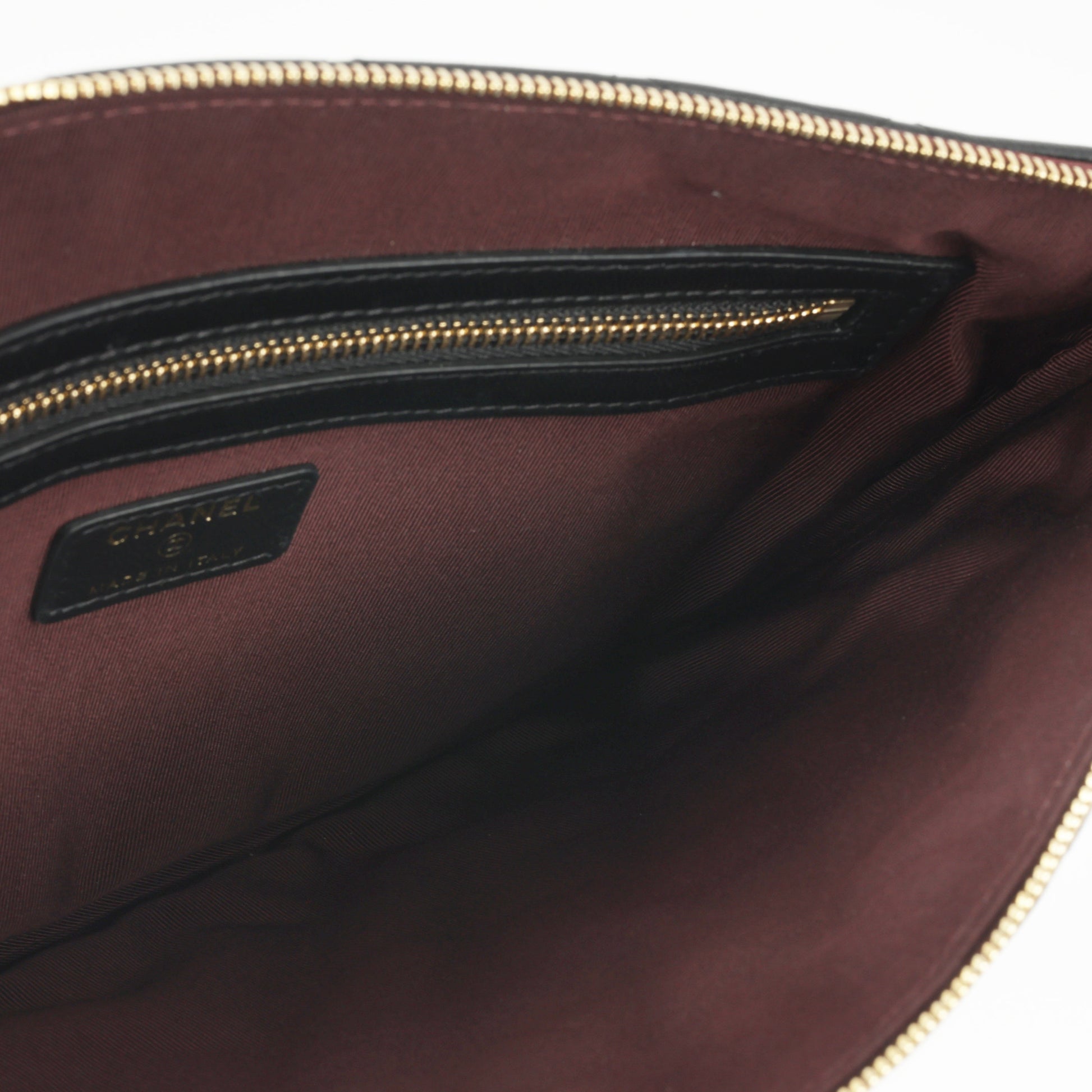 Crafted from a black lambskin leather, Chanel presents their classy and practical O-case pouch. This piece is sleek, stylish and sophisticated. The ideal every day clutch, the O-Case by Chanel is understated and elegant while remaining timeless and fashion forward.
