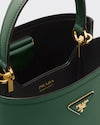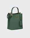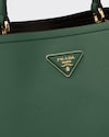 The elegant design of the Prada Panier bag is emphasized by the unmistakable texture of Saffiano leather. The bag has a detachable shoulder strap and an exclusive leather name tag with metal logo.