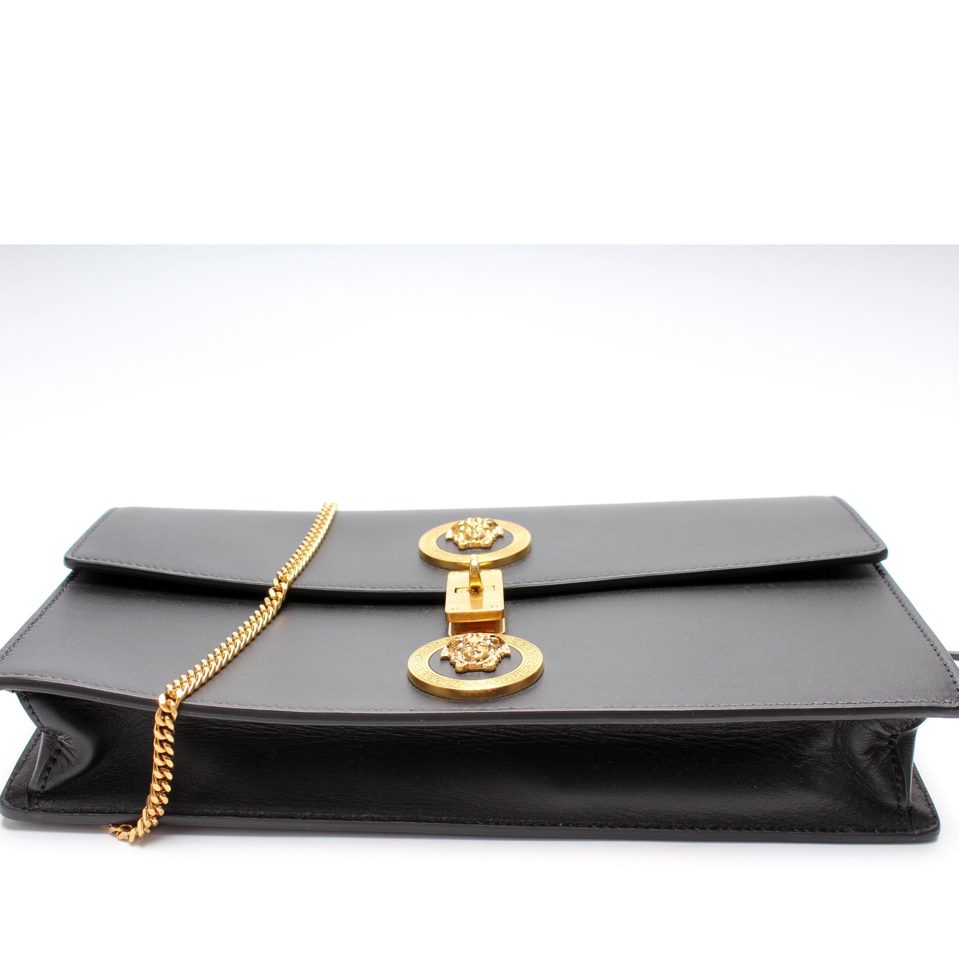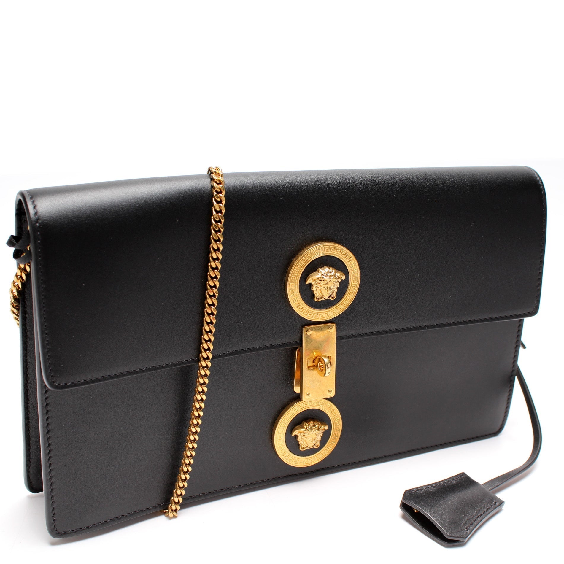 This Versace Medusa Padlock Clutch On Chainis eye catching bag.