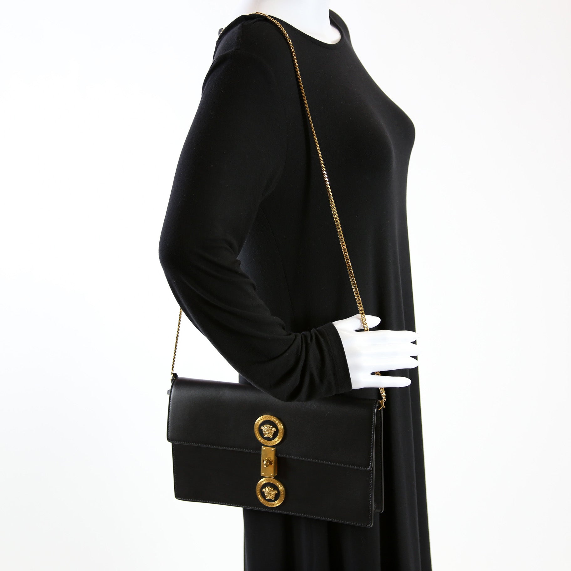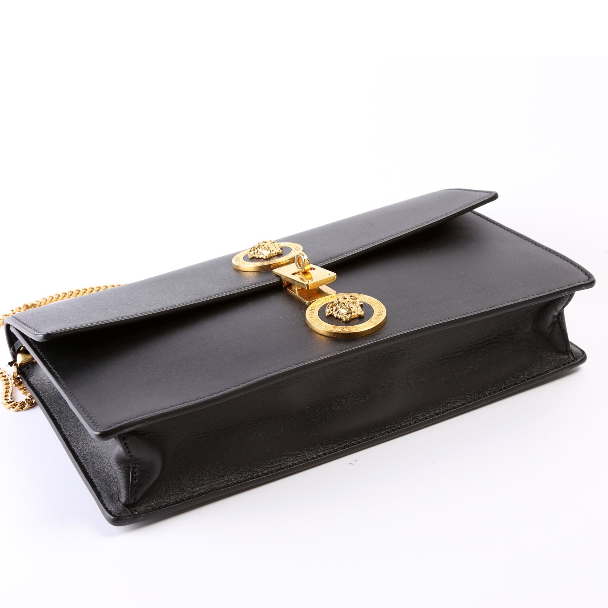 This Versace Medusa Padlock Clutch On Chainis eye catching bag.