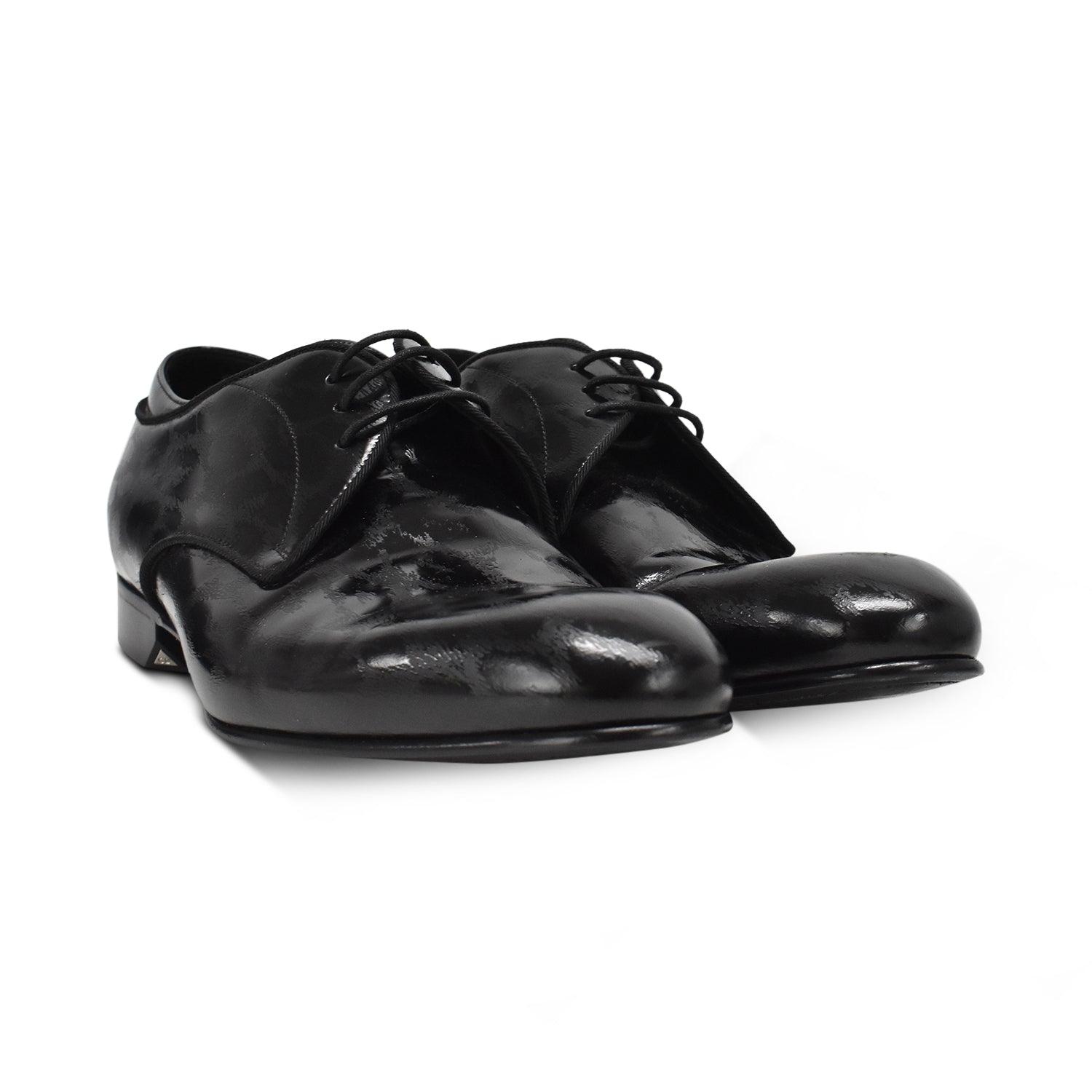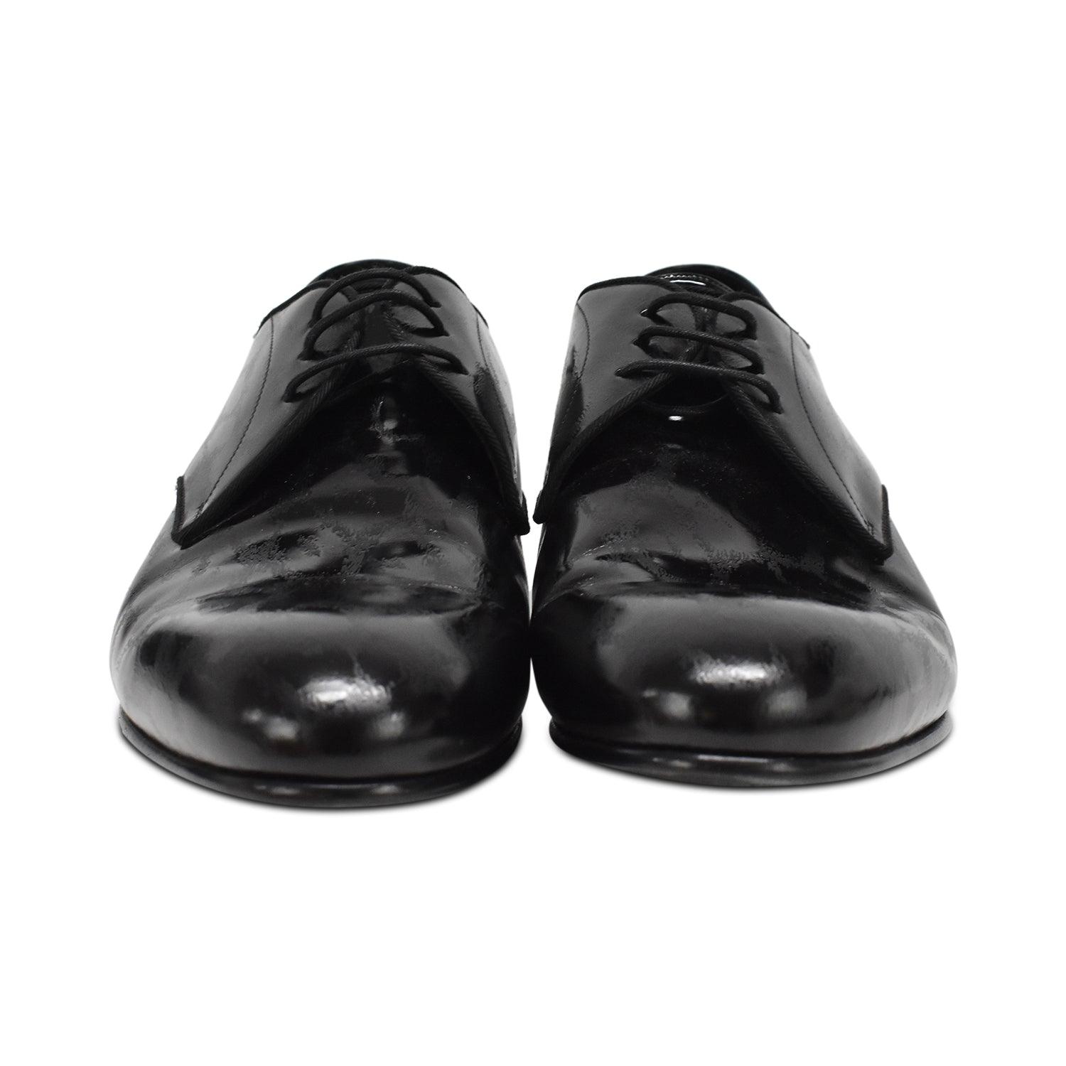 Christian Dior Dress Shoes in black patent leather in a tonal leopard print, lace-up closure and a rounded toe.
