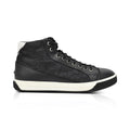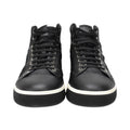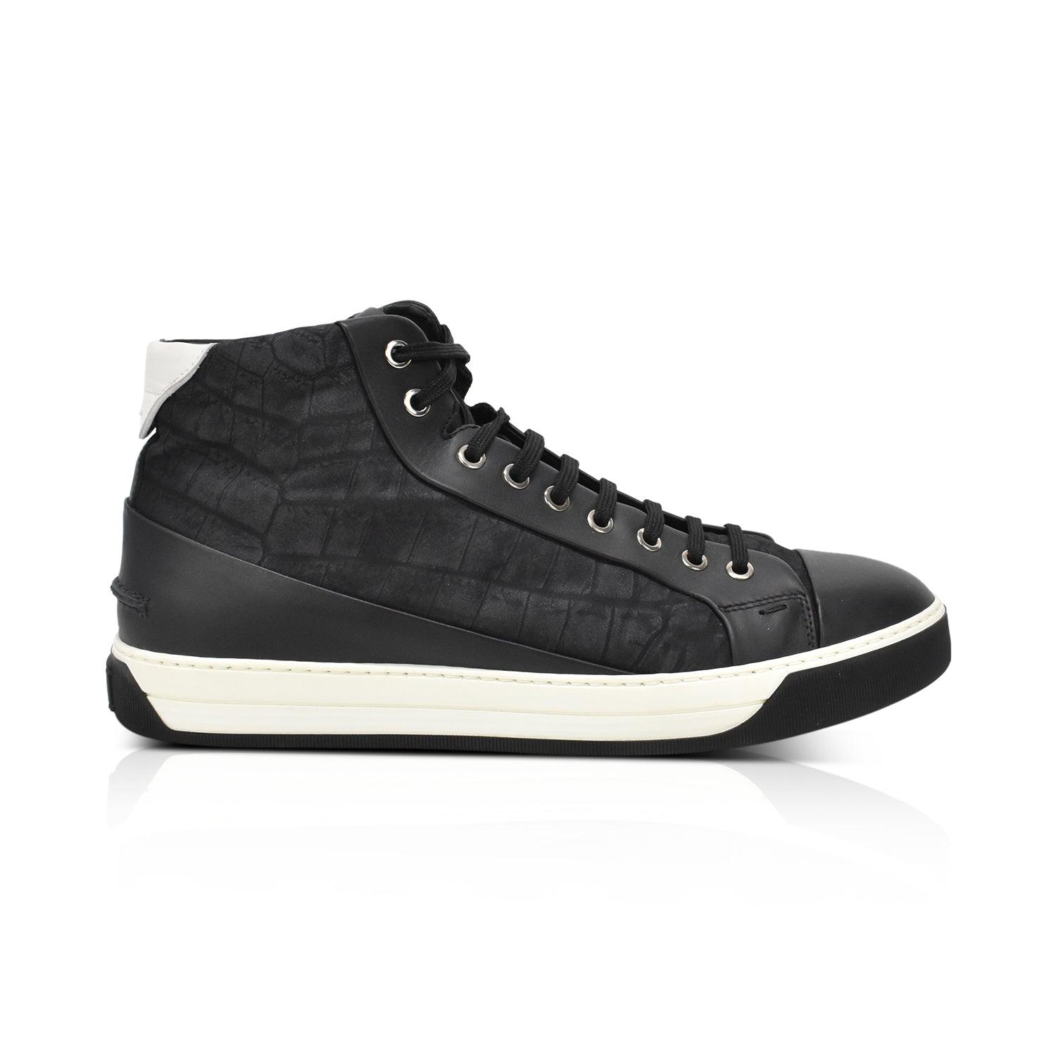 Fendi sneakers in black leather with a white sole, black laces, and a croc embossed suede side detail.