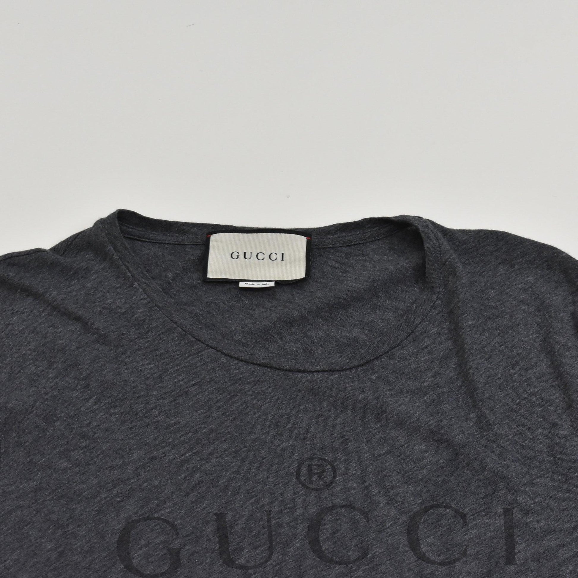 Gucci T-Shirt in grey cotton with a graphic logo in black.