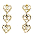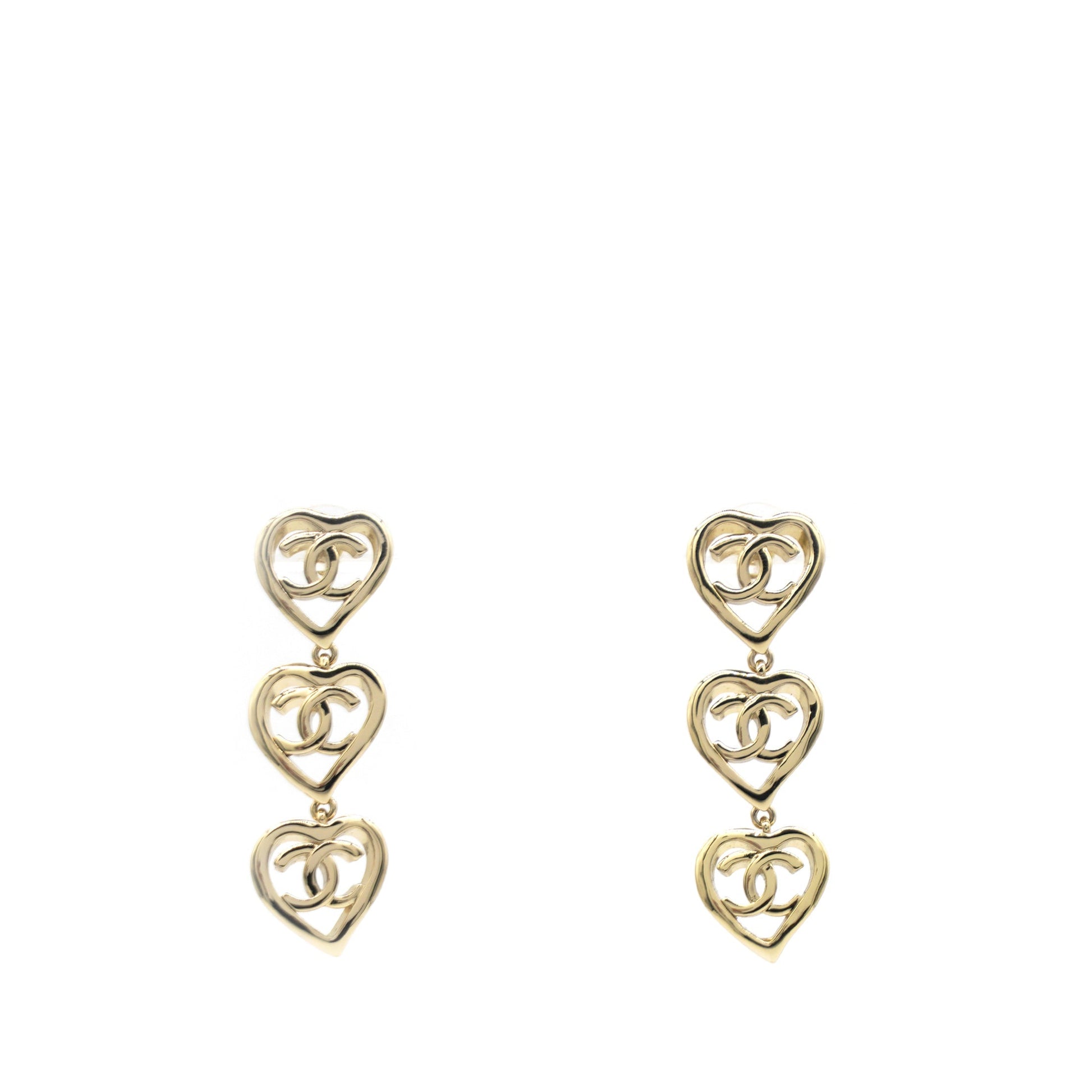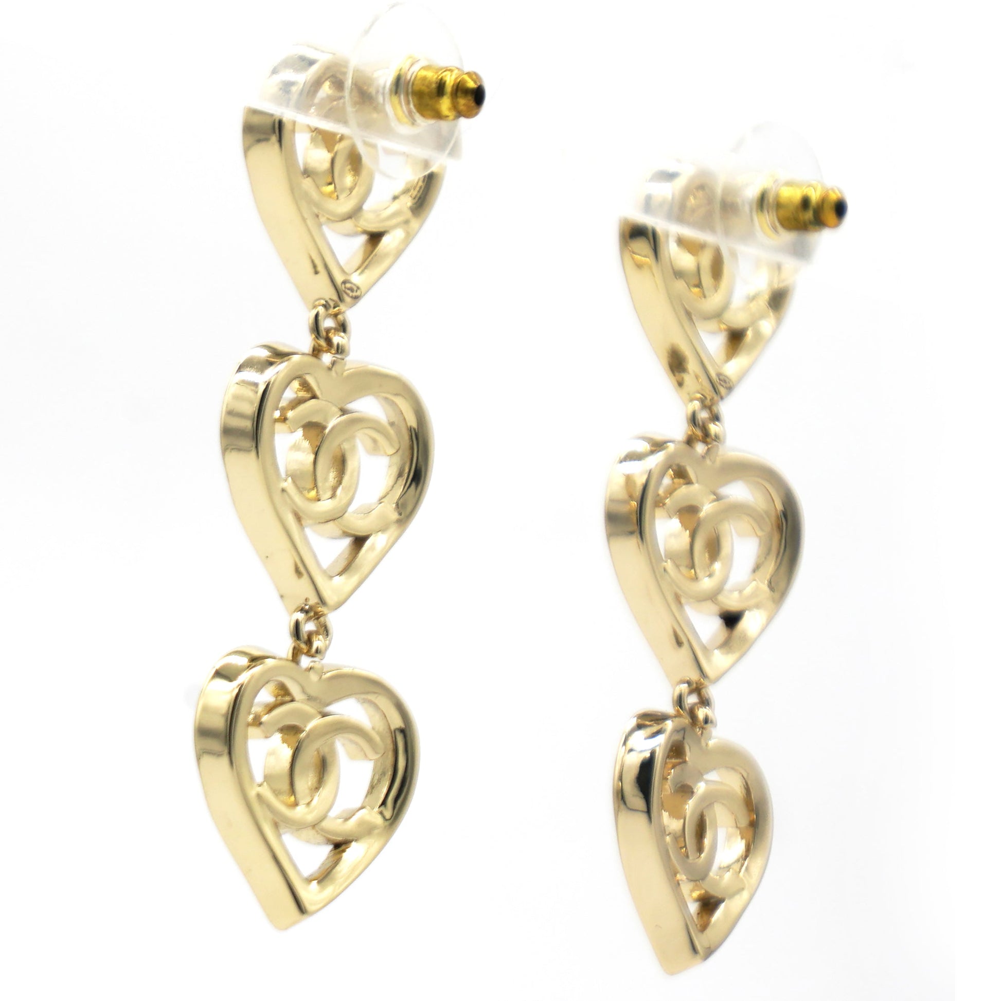 Chanel Metal CC Triple Heart Drop Earrings Gold