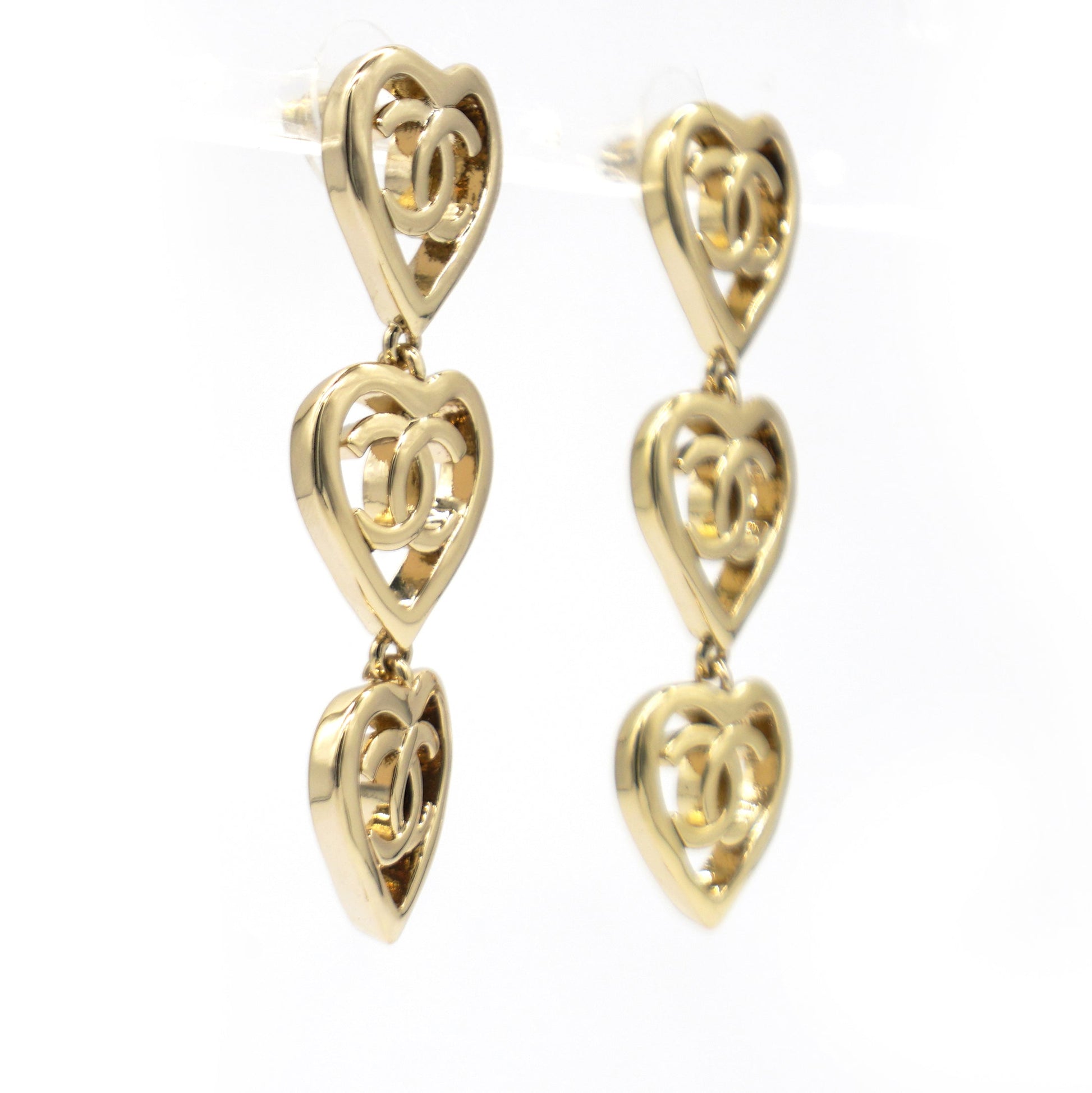 | This is an pair of CHANEL Metal CC Triple Heart Drop Earrings Gold. These elegant earrings are crafted in a gold tone and feature tiered CC logos. | Material: Metal Measurement:W 1.8 cm H 6.0 cm D 0.3 cm Accessories: | ![]() |