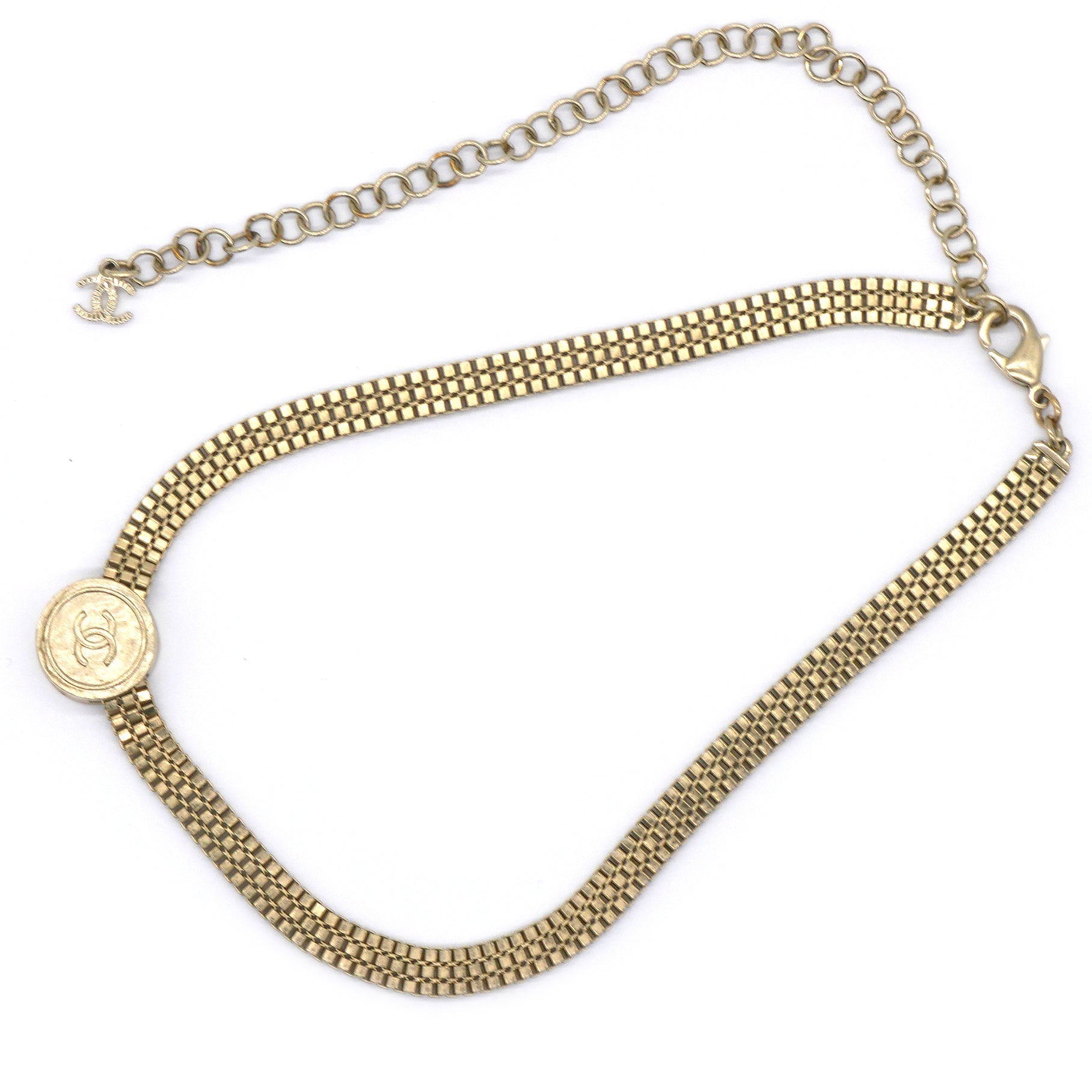 Chanel Metal Chain Link CC Medallion Choker Necklace Gold