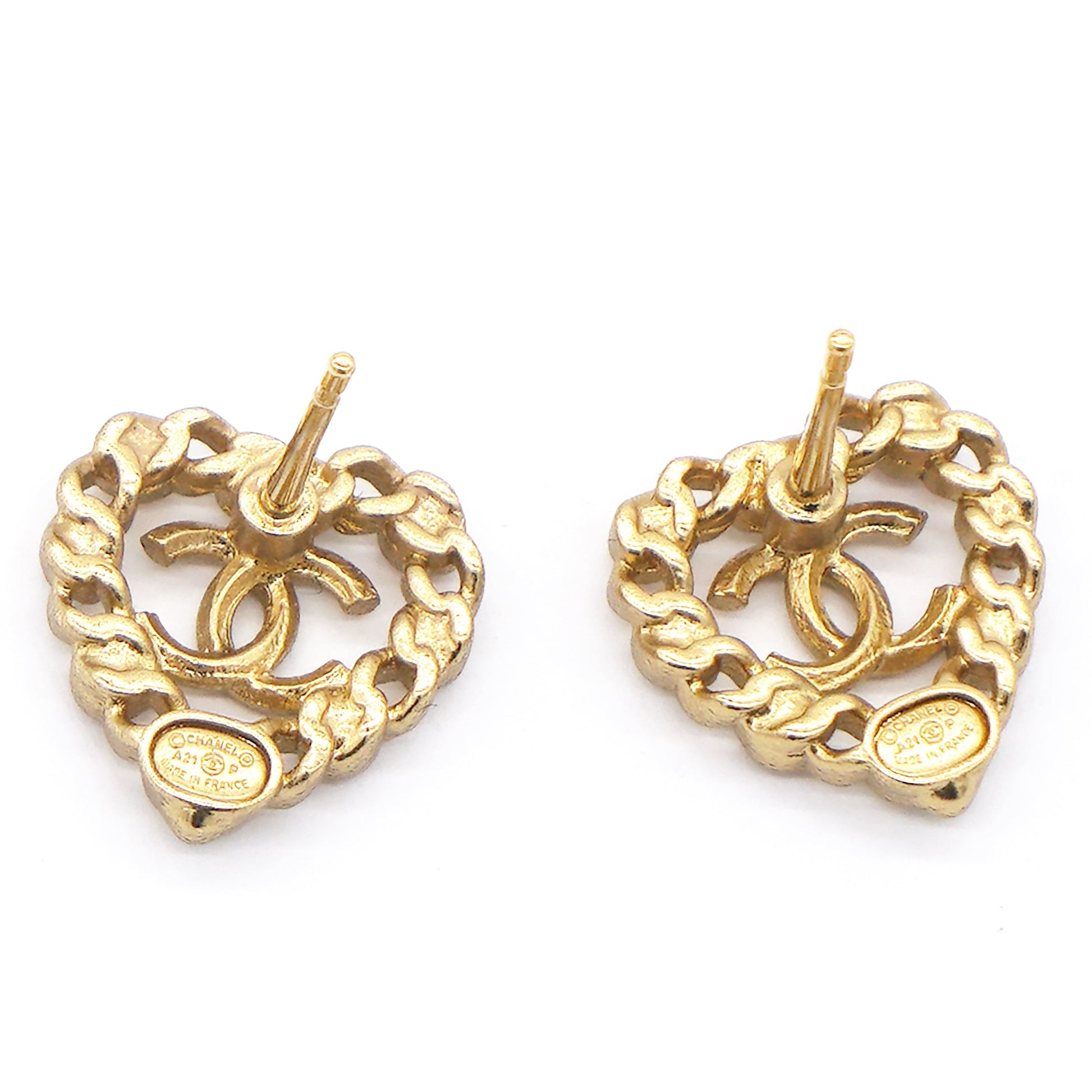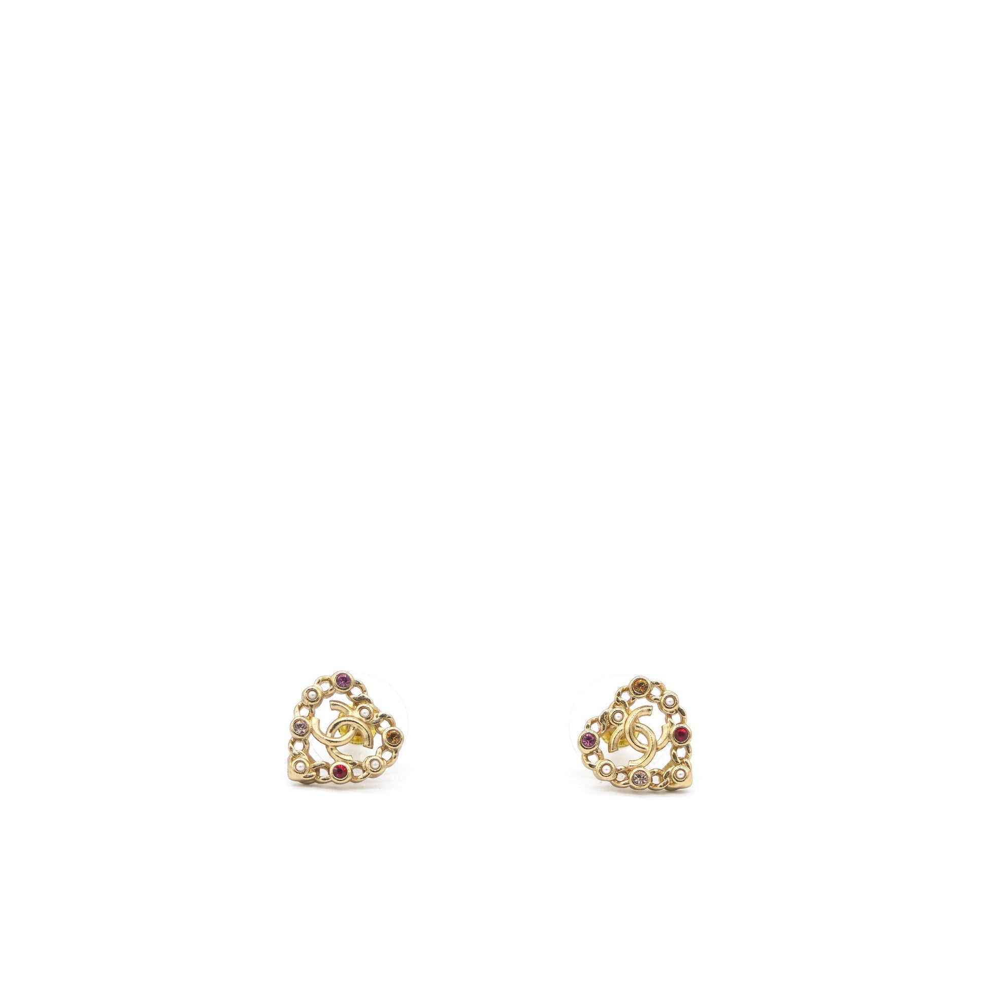 Chanel Pearl Crystal CC Heart Earrings Gold Multicolor