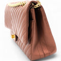 | This stylish shoulder bag is beautifully crafted of chevron-quilted aged calfskin leather in gold. The bag features a gold reissue chain shoulder strap and a matching mademoiselle turn lock on the front. This opens the bag to reveal an inner flap, and a matching leather interior with patch pockets. | Material: Leather Lining: Leather Hardware: Gold color finish metal Accessories: Serial Number: 26827555 Production Year: 2018 | ![]() |