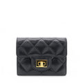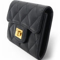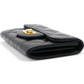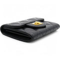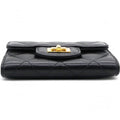 | This stylish wallet is crafted of soft quilted calfskin leather in black and features a facing faux gold Mademoiselle turn lock. The wallet opens with a snap to a partitioned fabric interior. | Material: Leather Lining: Textile Hardware: Gold color finish metal Accessories: Serial Number: 28303602 Production Year: 2019 | ![]() |