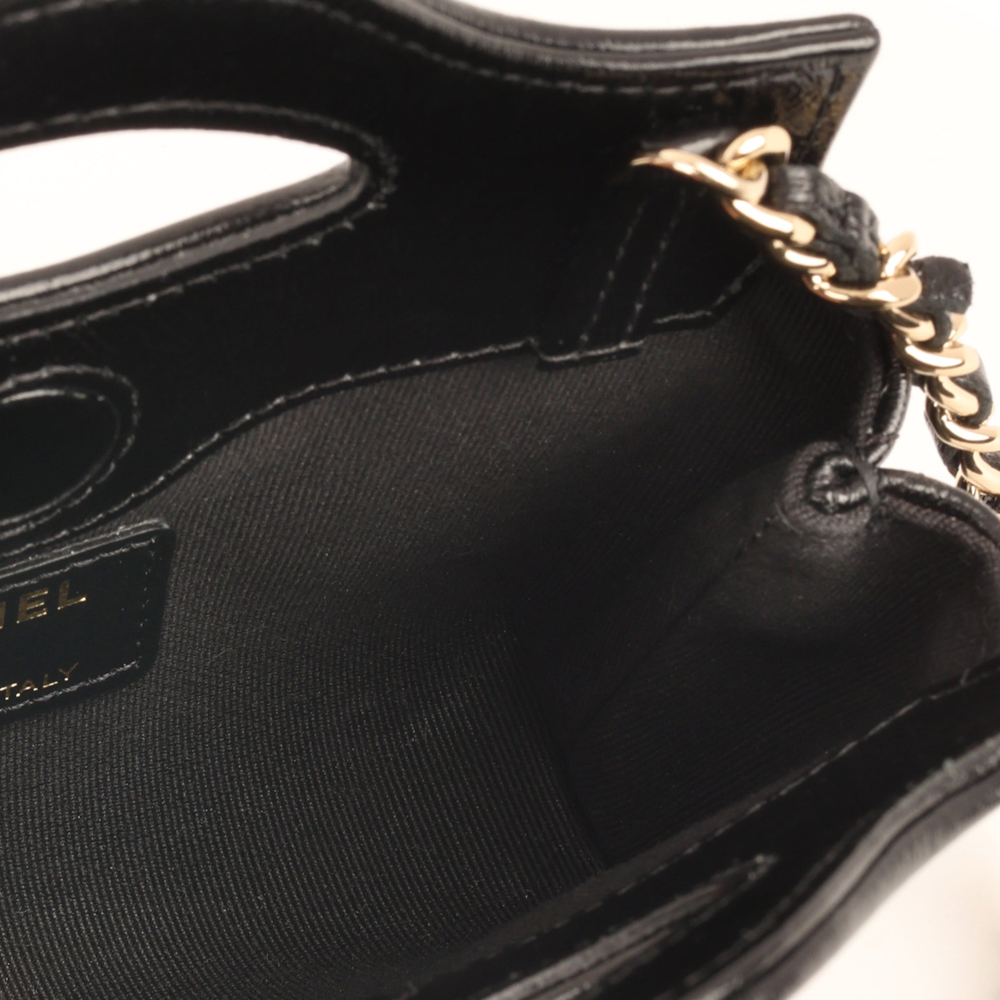 From Chanel's Cruise 2024 Collection, the Micro 31 Clutch with Chain is crafted from durable black calfskin with a delicate chain. This new season must-have can be carried by hand or worn across the body.