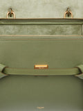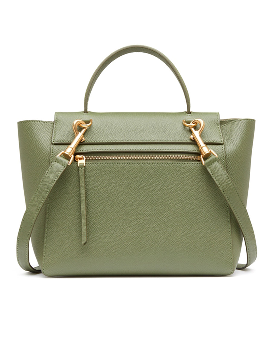 - Flap closure with hidden metallic piece and zipped closure under the flap
