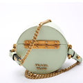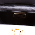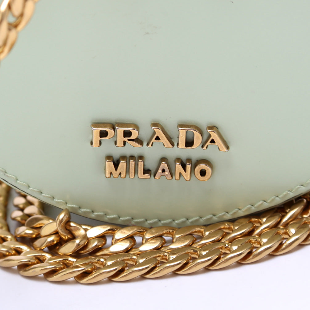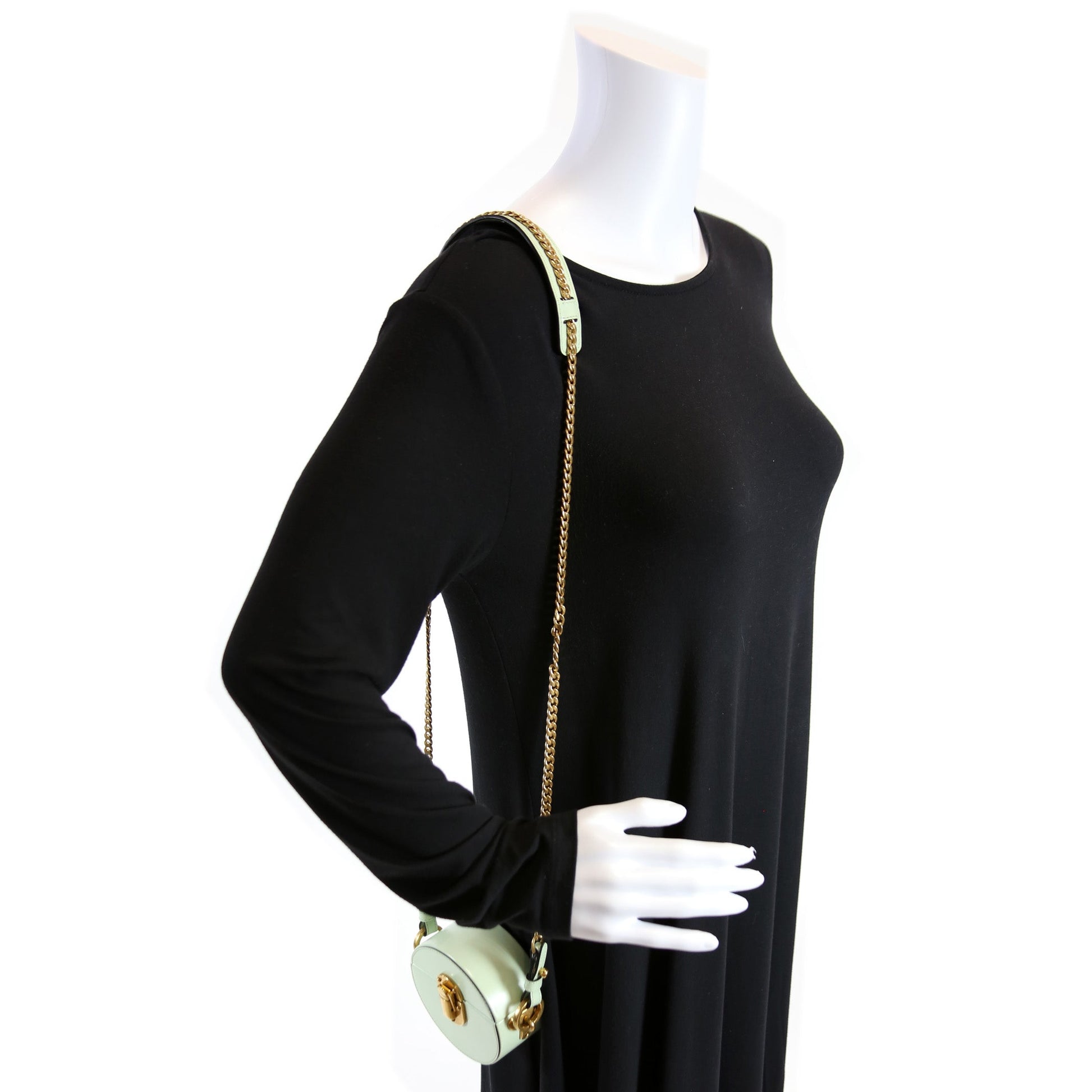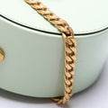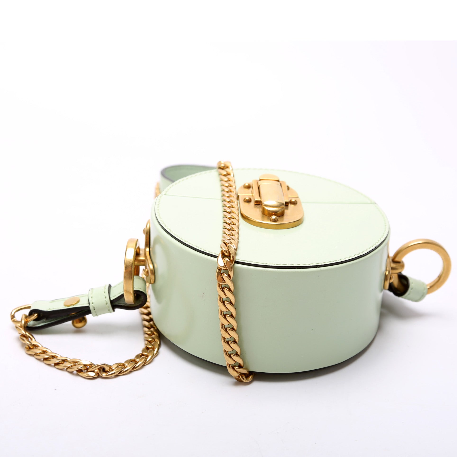 Exterior: The exterior leather shows minor scuffs and impressions from the chain.