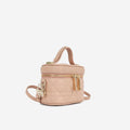 The Lady Dior Micro Vanity Case is a petite showcase of Dior's iconic elements. Crafted from soft blush lambskin leather adorned with the signature Cannage topstitching, it exudes luxury. Adding a playful touch, a detachable "D.I.O.R." charm swings from one side. With a zipped closure and a removable strap, it offers versatility for crossbody wear. This miniature masterpiece encapsulates Dior's distinctive style in a compact design.