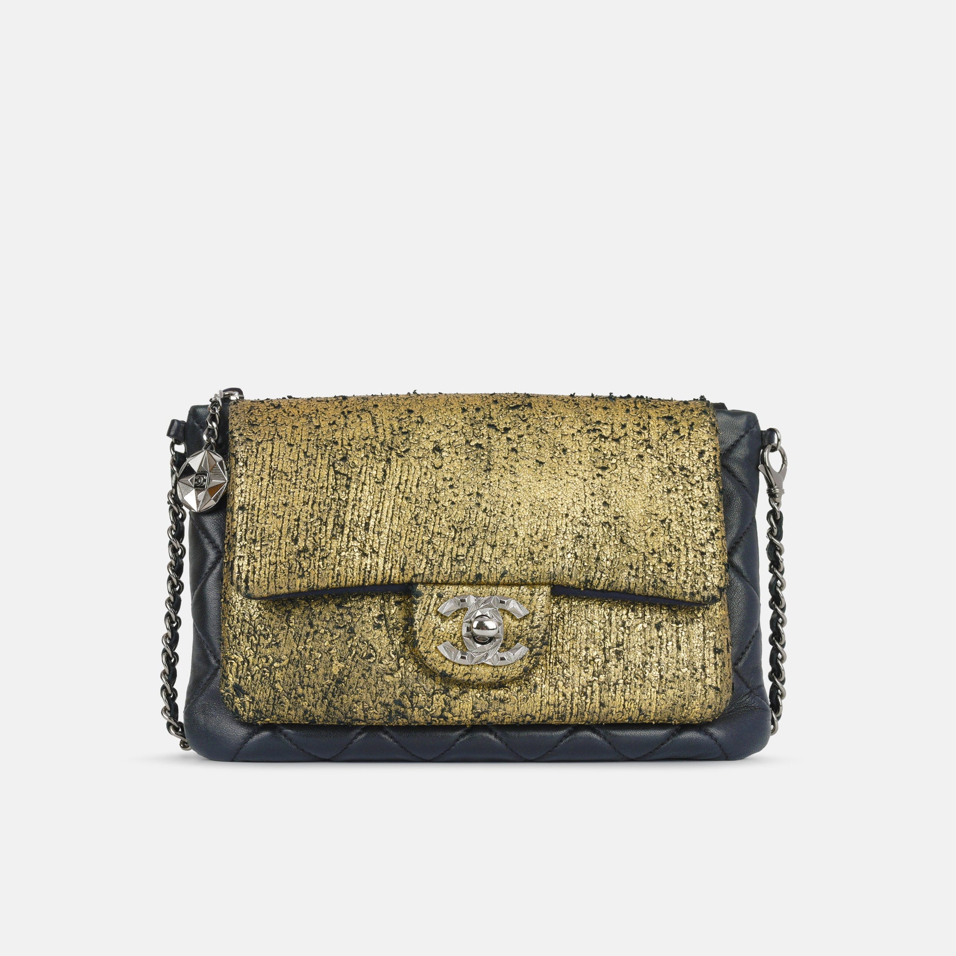- Gold Lambskin Pocket flap with CC twist-lock clasp
