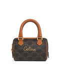 Mini Boston Bag in Triomphe Canvas with Celine Cursive