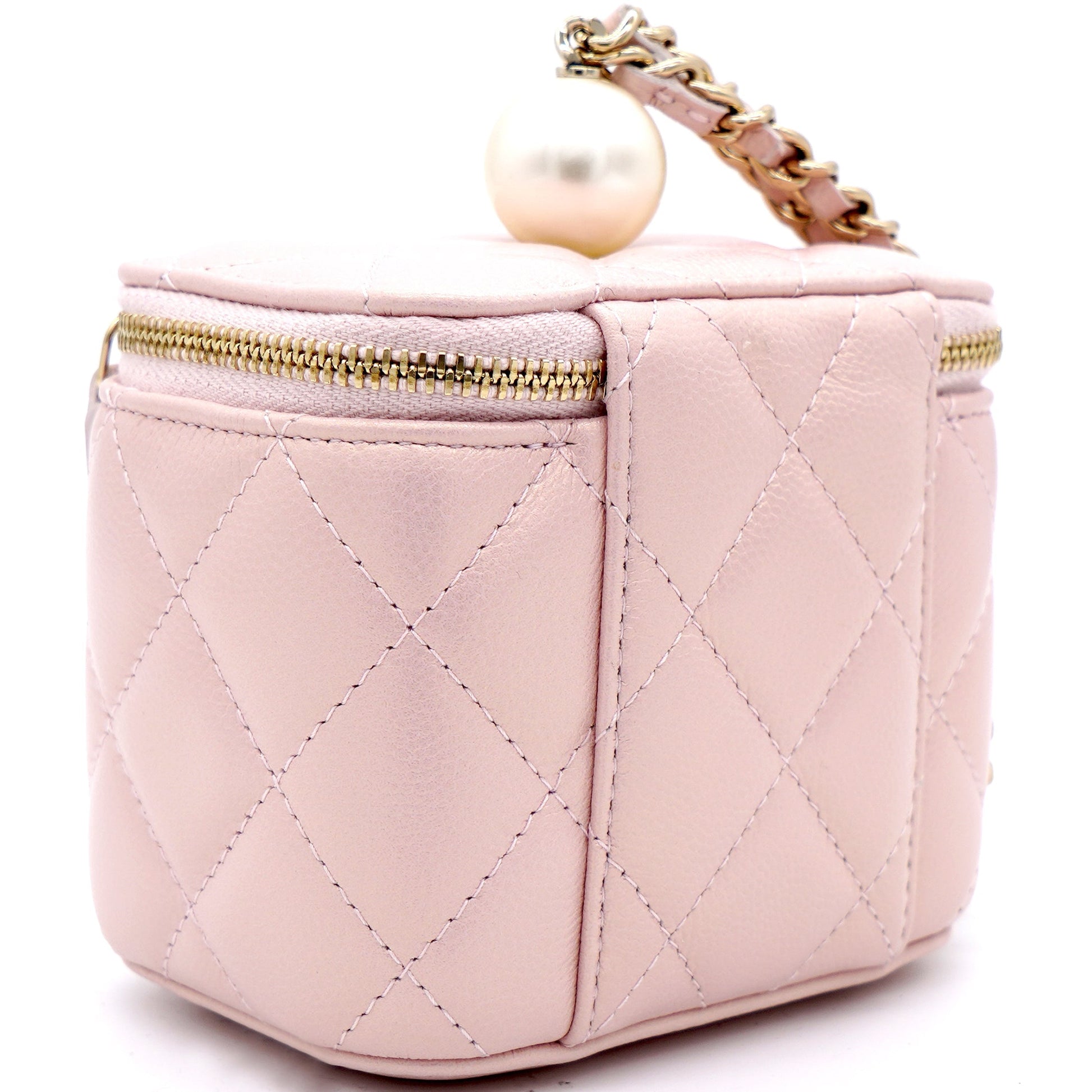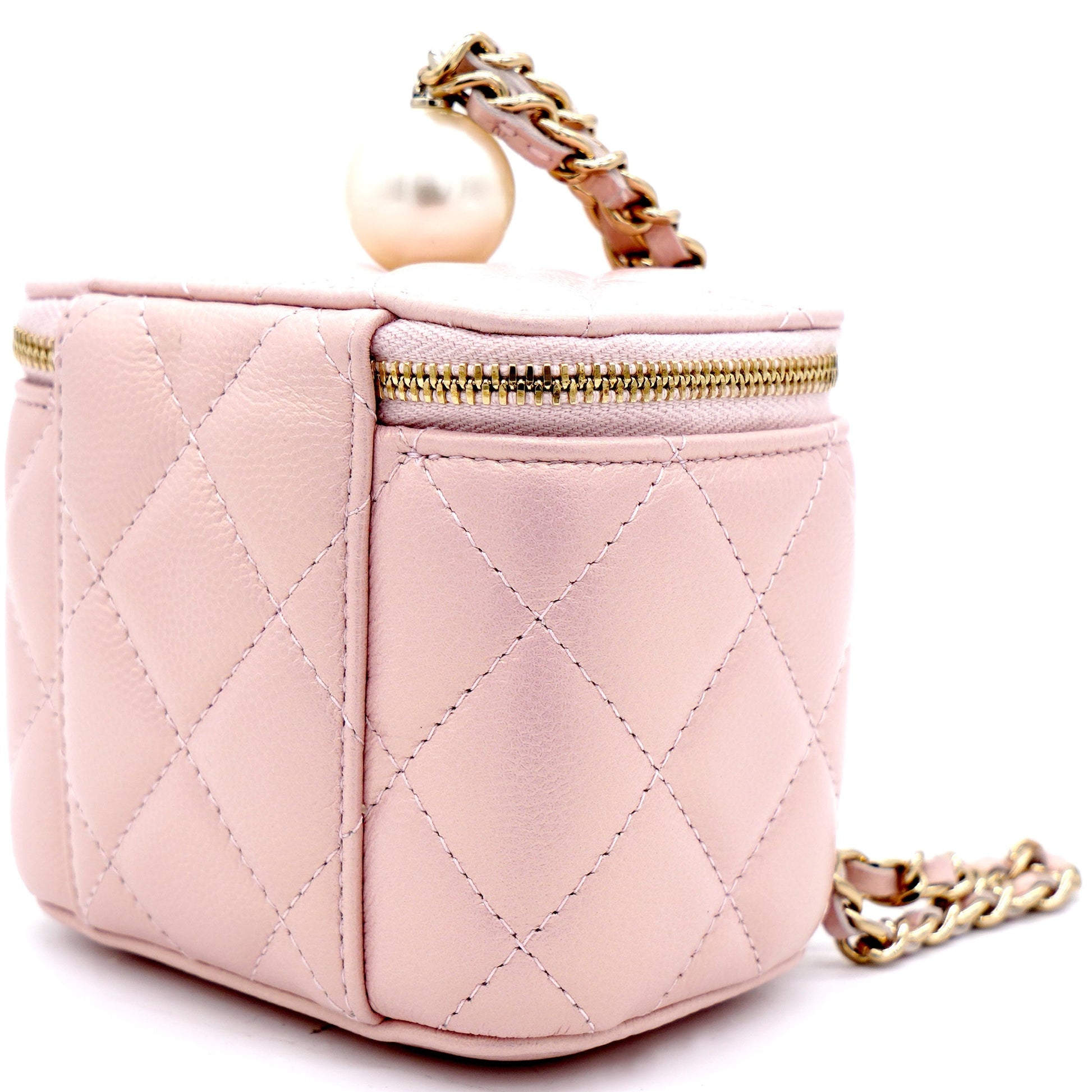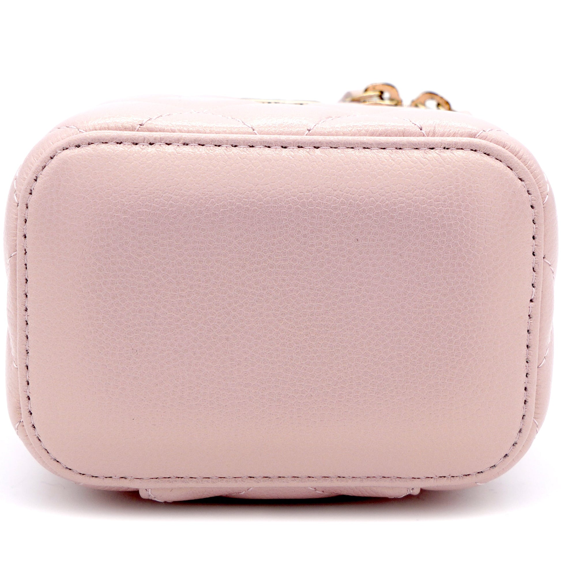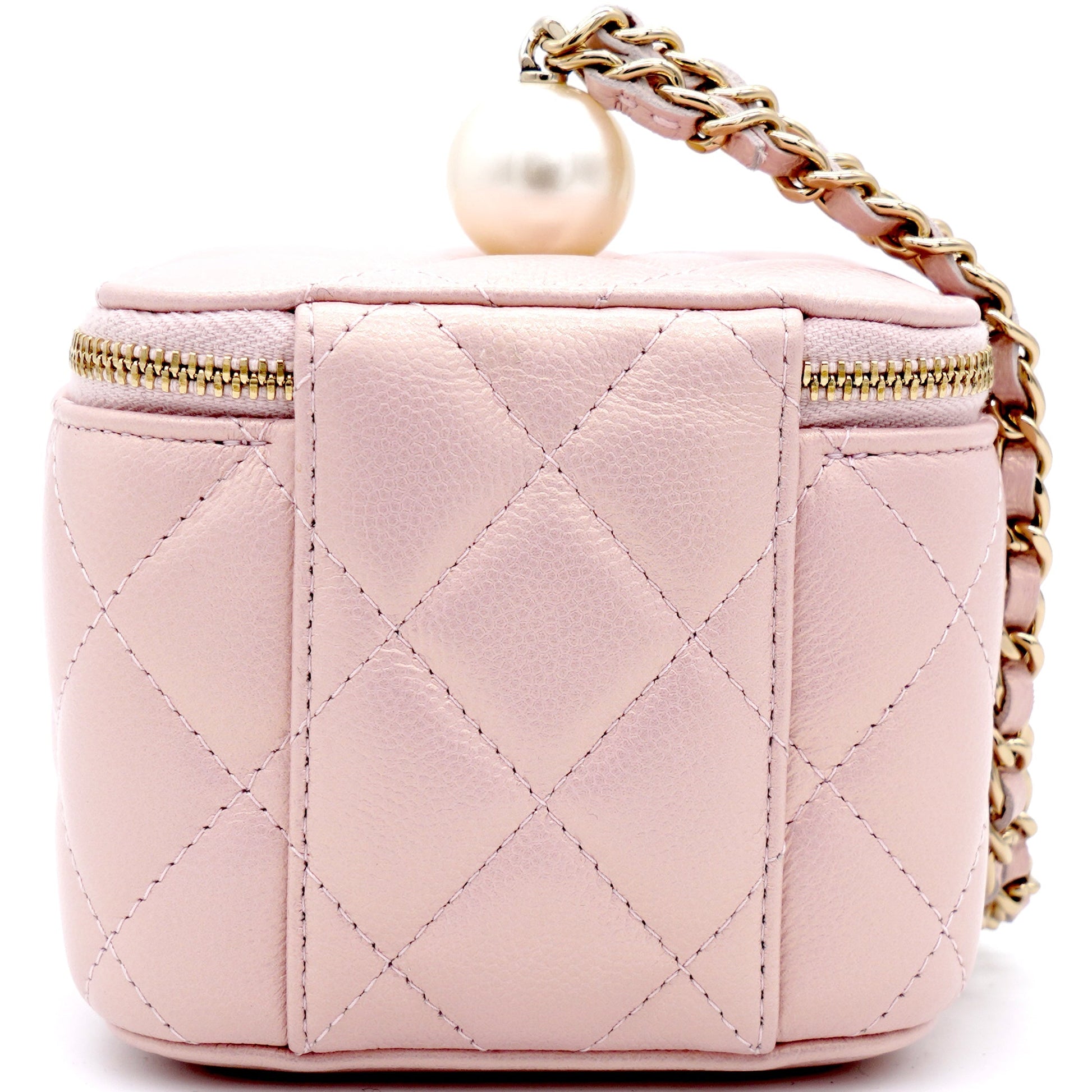 Chanel Mini Caviar GHW Vanity Case with Pearl Details Light Pink