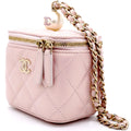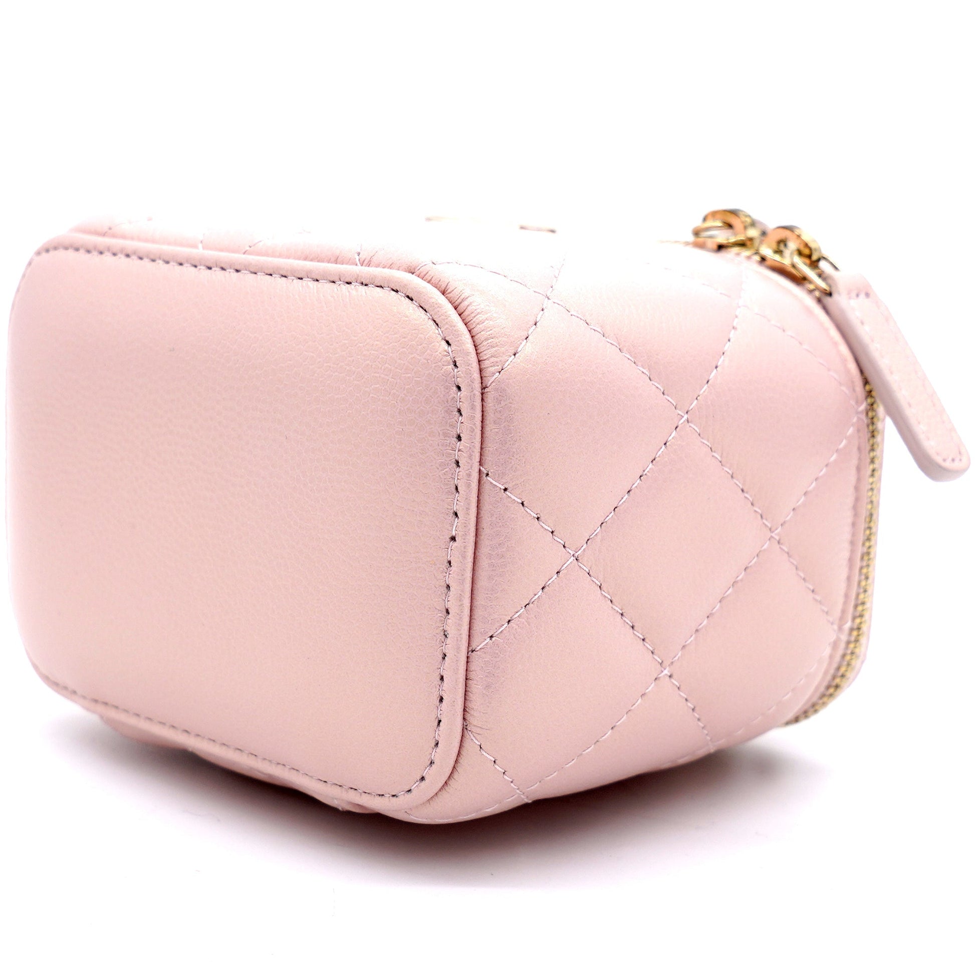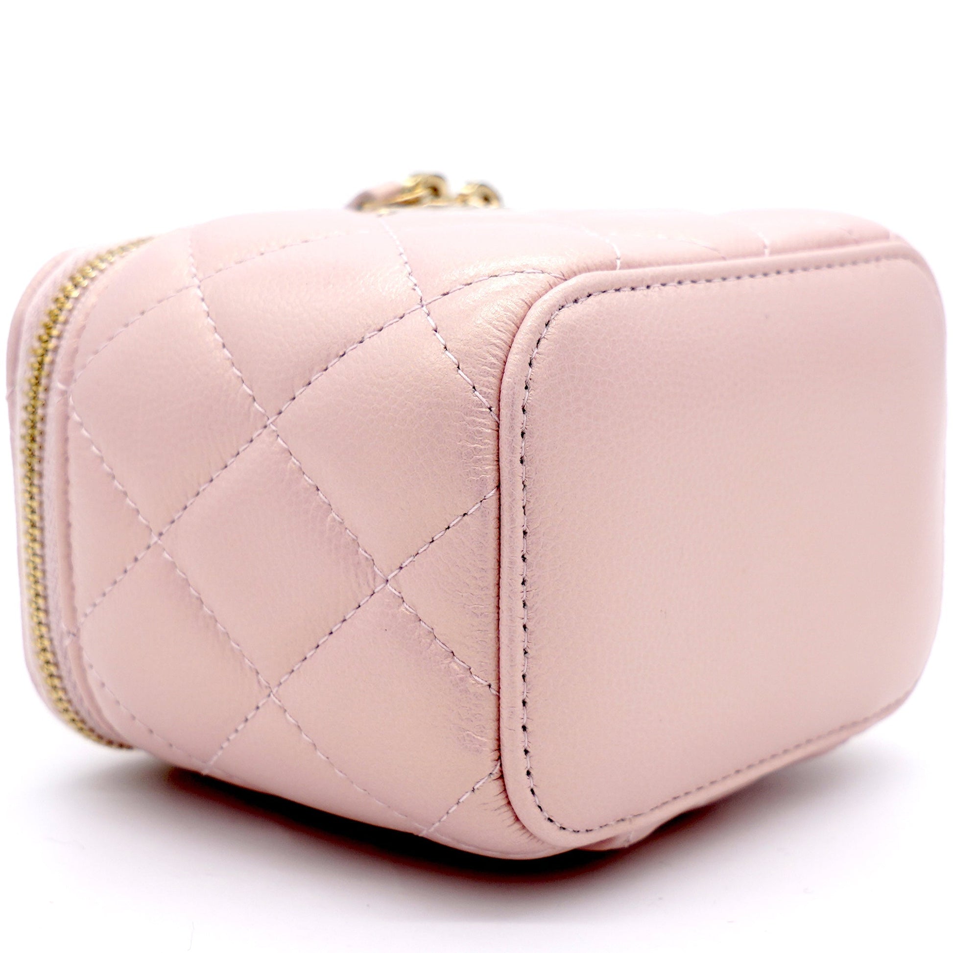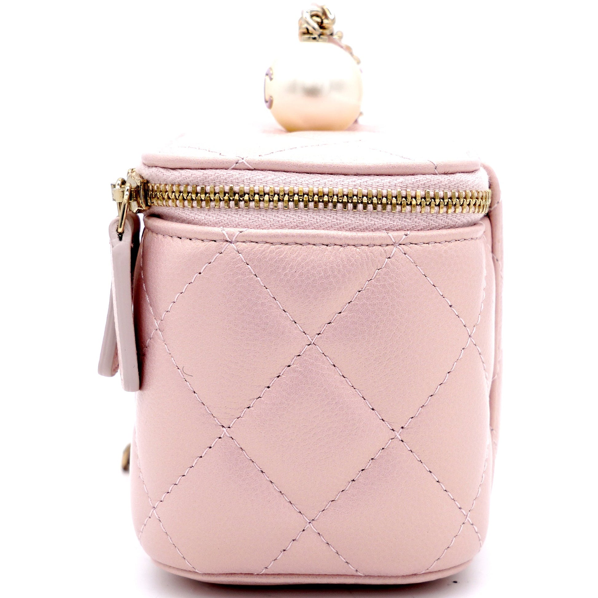 Chanel Mini Caviar GHW Vanity Case with Pearl Details Light Pink