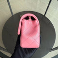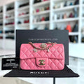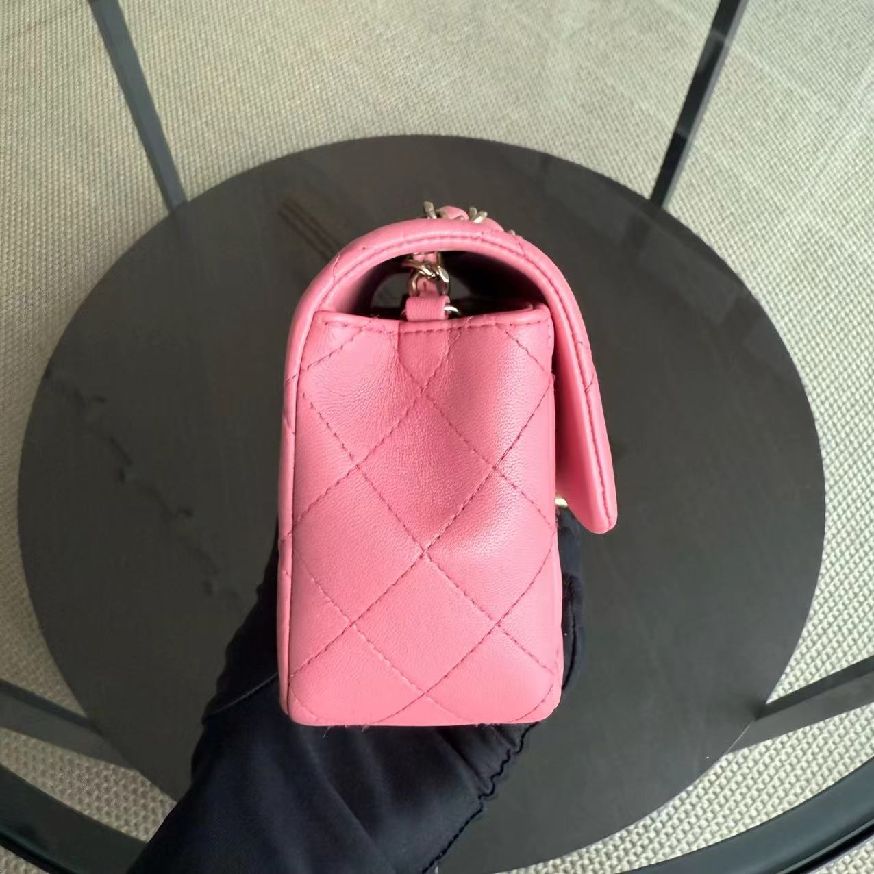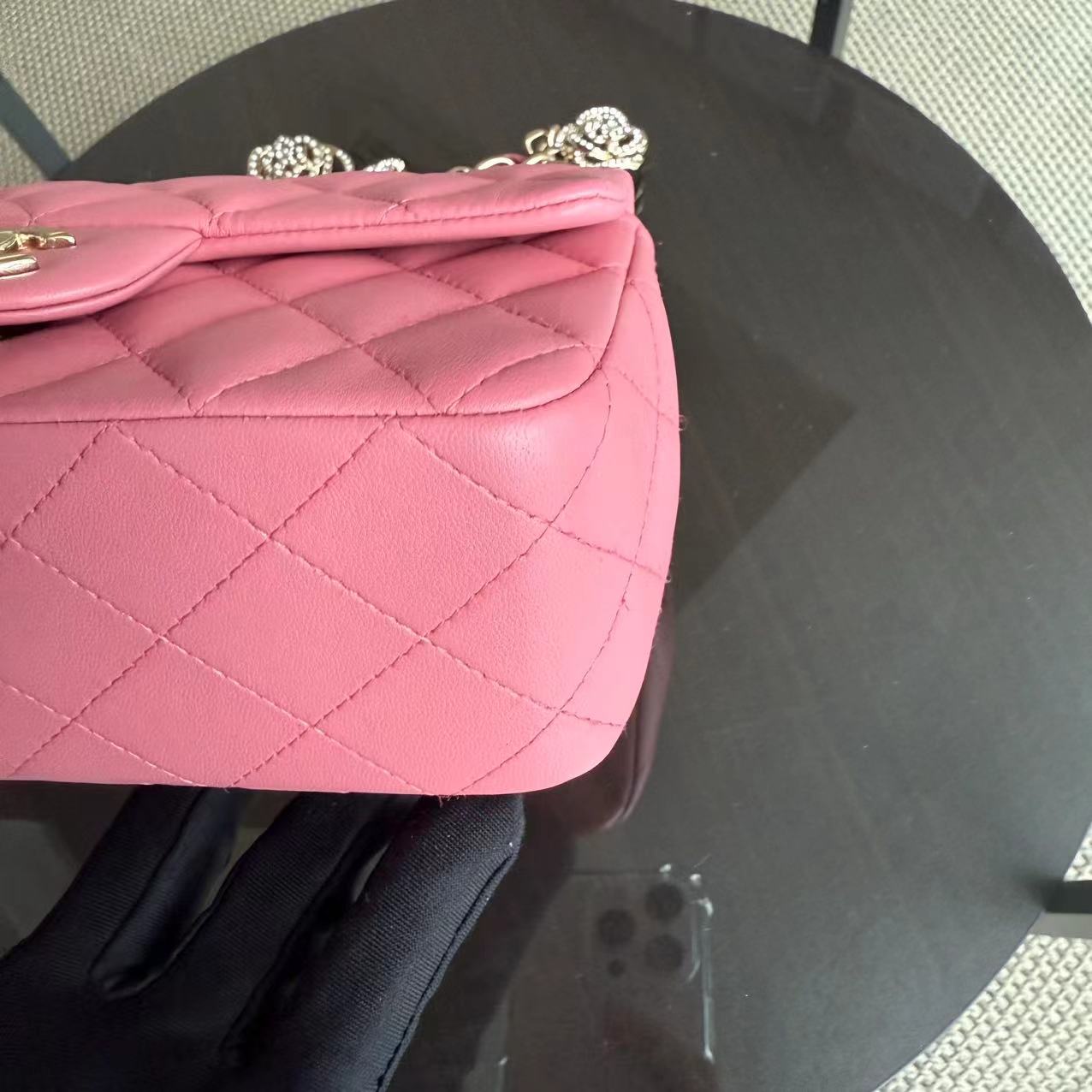 Mini Classic Flap Rectangle Valentine Quilted Lambskin Pink Golden Hardware Sereis 19