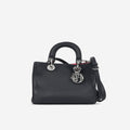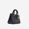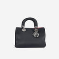 The Mini Diorissimo is a modern play on the Lady Dior. Featuring grained leather in a more soft and slouchy appearance, this bag is more relaxed and casual. Still featuring two top handles and removable crossbody strap this bag is versatile and can be carried in several different ways.
