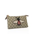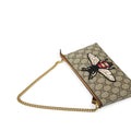 Carefully crafted from monogram canvas with a prominent bee embossed on the front, this mini Gucci gem is a true must-have. This little accessory was made for cool girls who aren't afraid to stand out. Featuring a short chain strap and spacious compartment with plenty of room to carry all your small essentials in style, this unique piece is definitely fashion-forward as well as functional. Chic, stylish and youthful, this Gucci bag is a well-worthy addition to any luxury handbag collection.