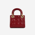 Christian Dior Mini Lady Dior Cherry Red Patent Champagne Gold Hardware