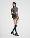 The accessory with contemporary allure is characterized by the stitching that recalls the iconic geometric symbol of the brand. The metal lettering logo stands out on the front adding its signature touch to the bag.