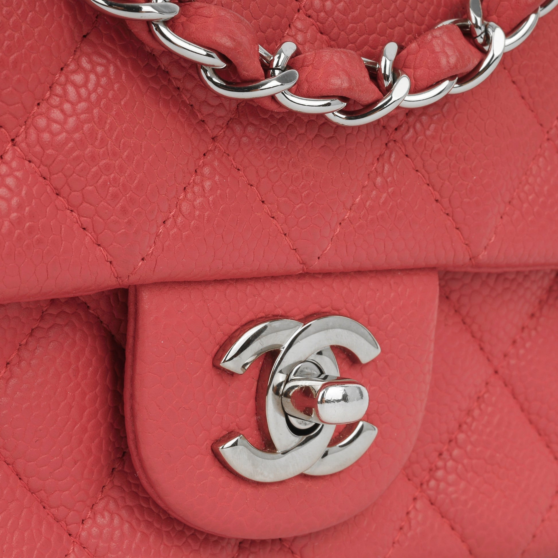- Pink / Red quilted caviar leather