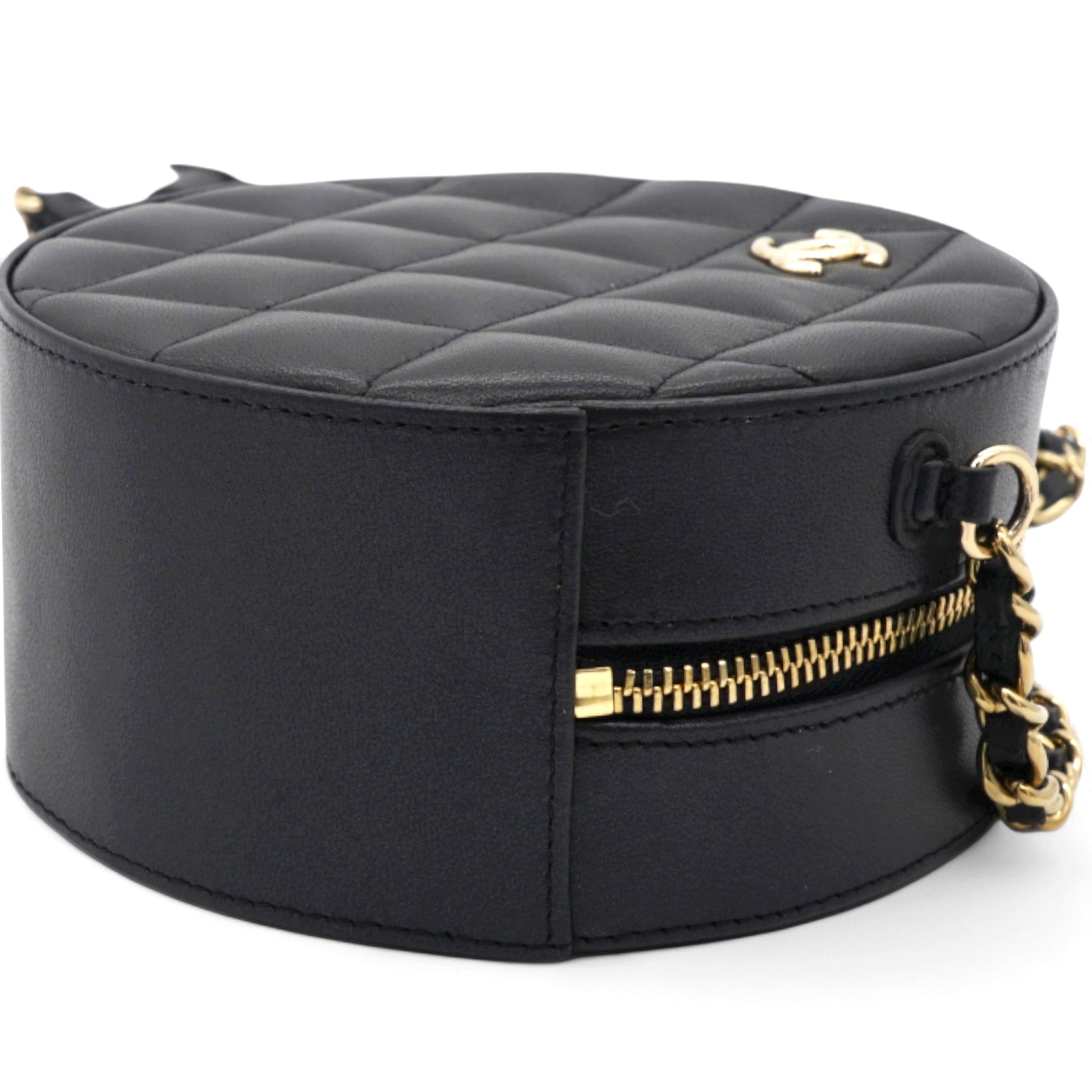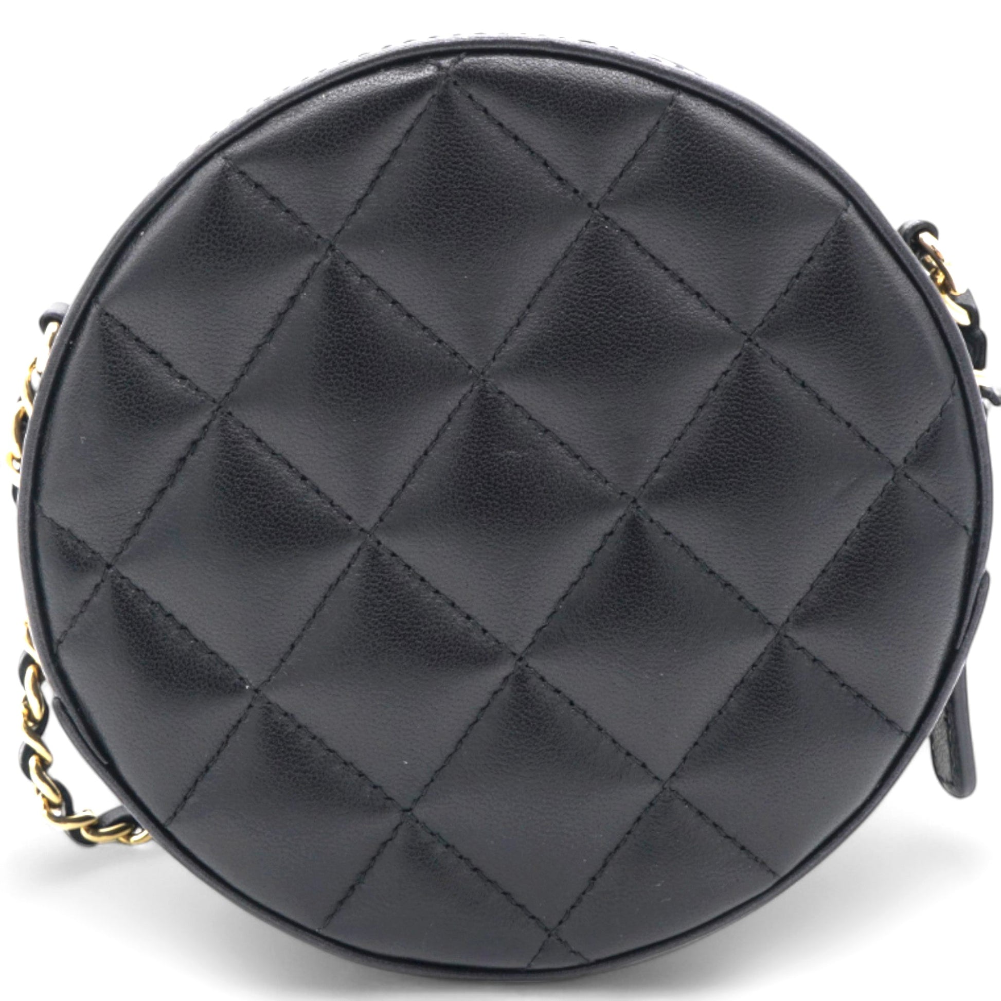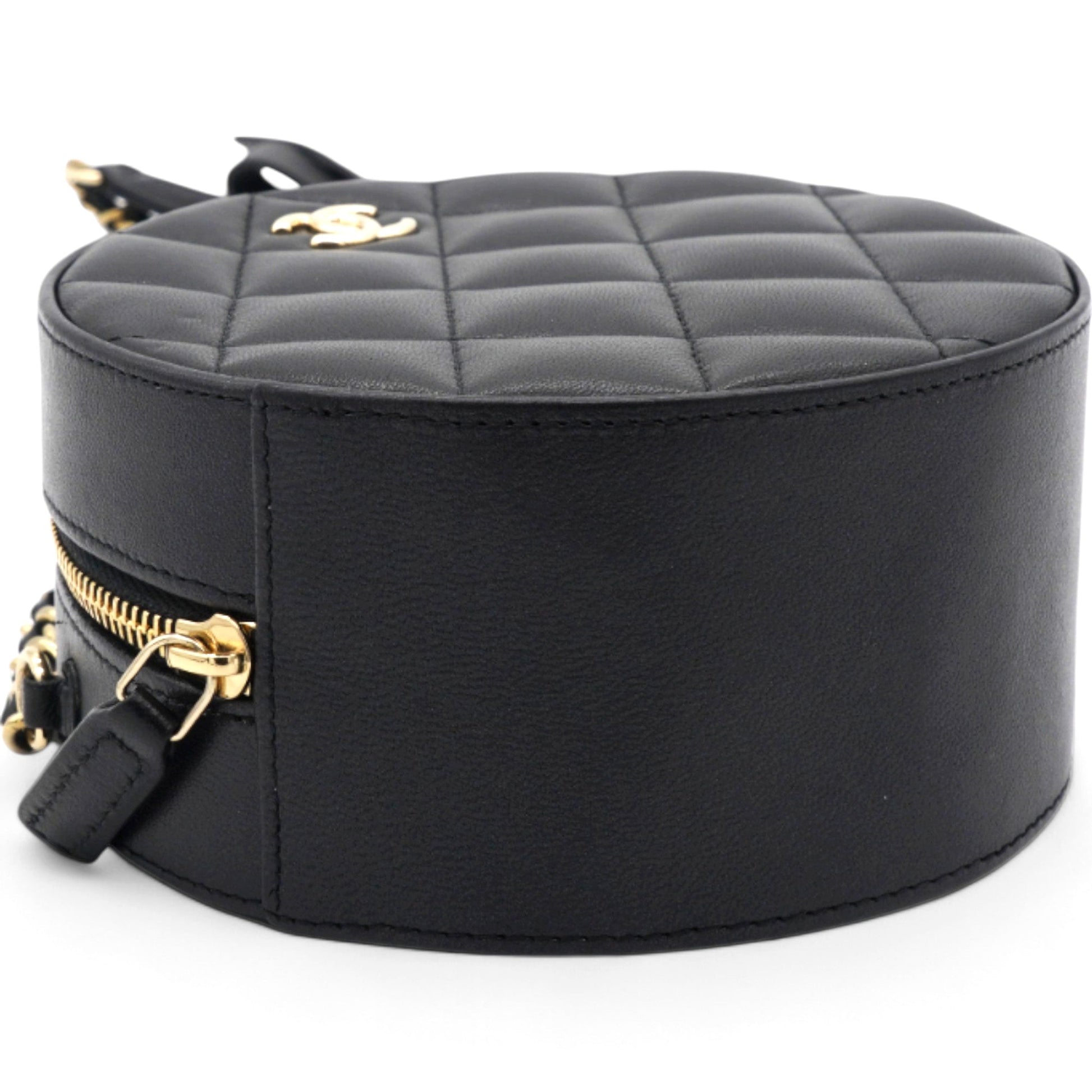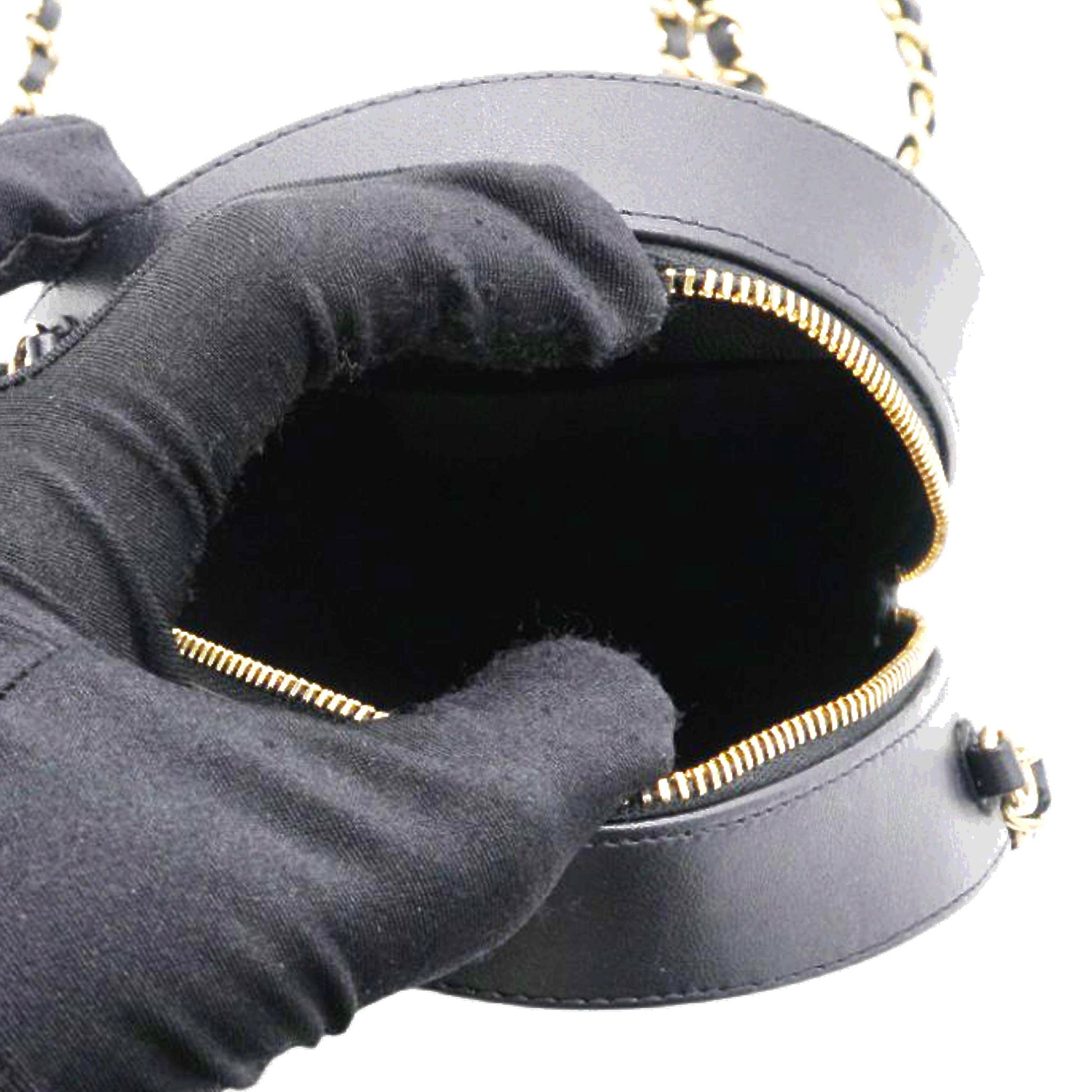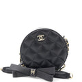 Chanel Mini Round Purse Vanity Lambskin Leather Black Bow Knot