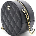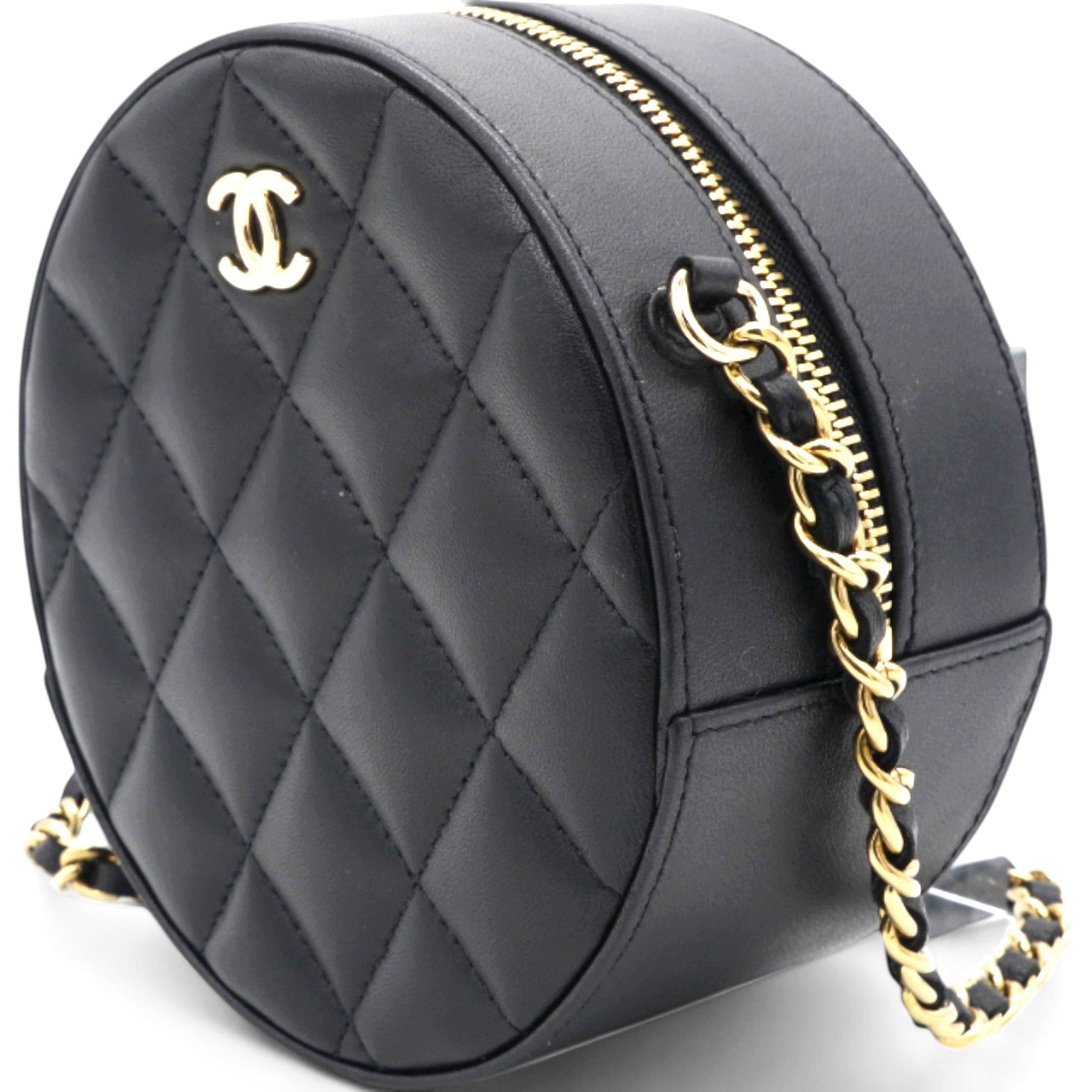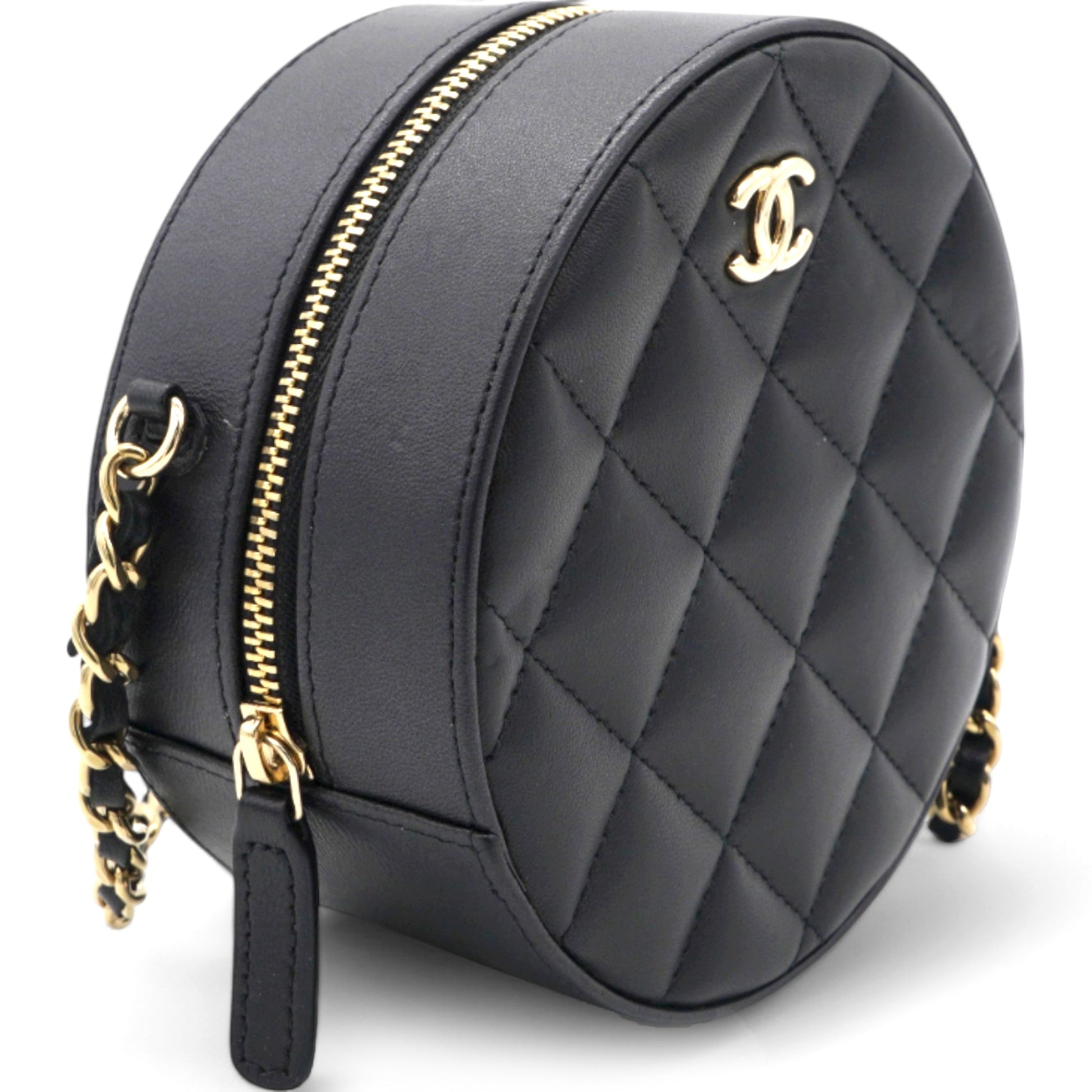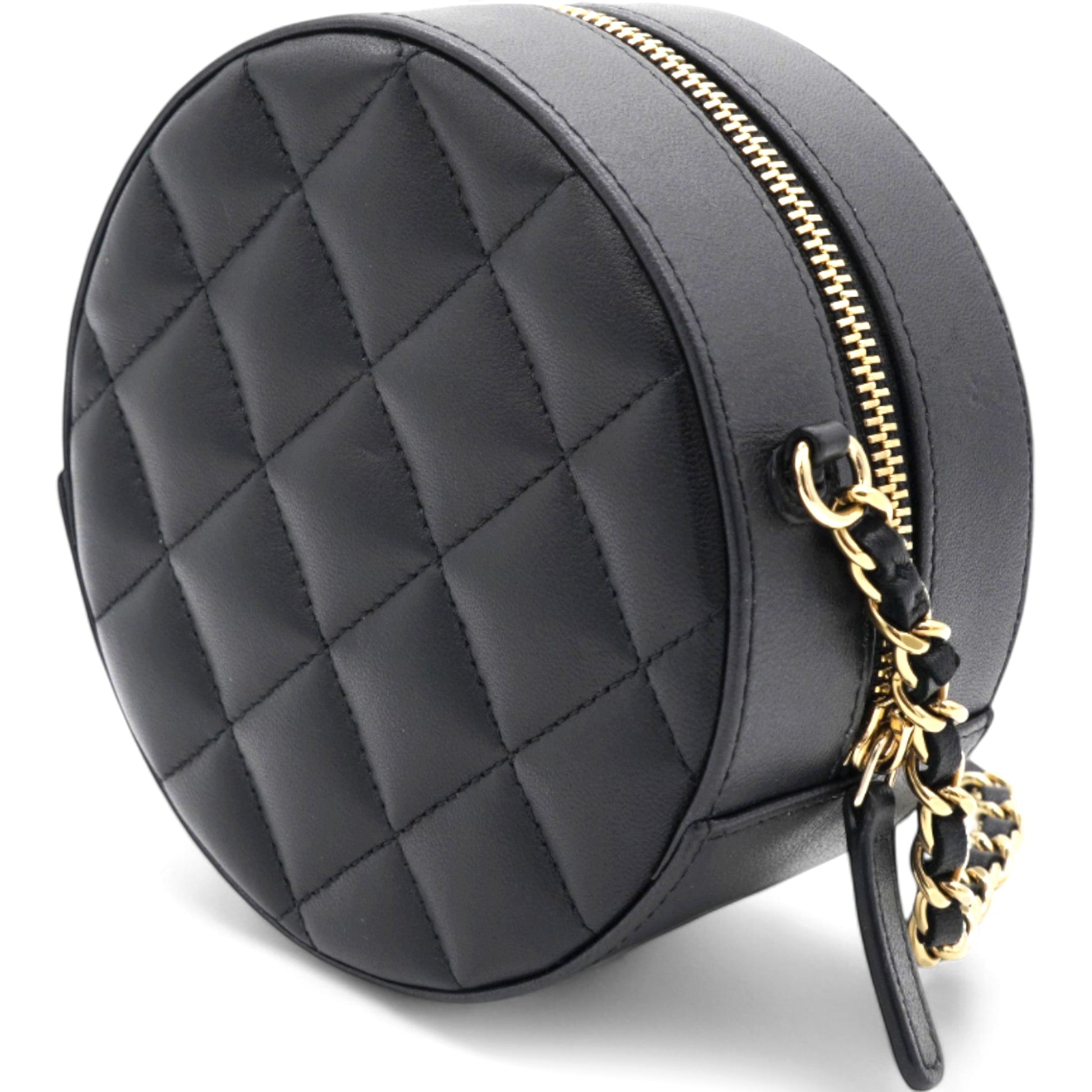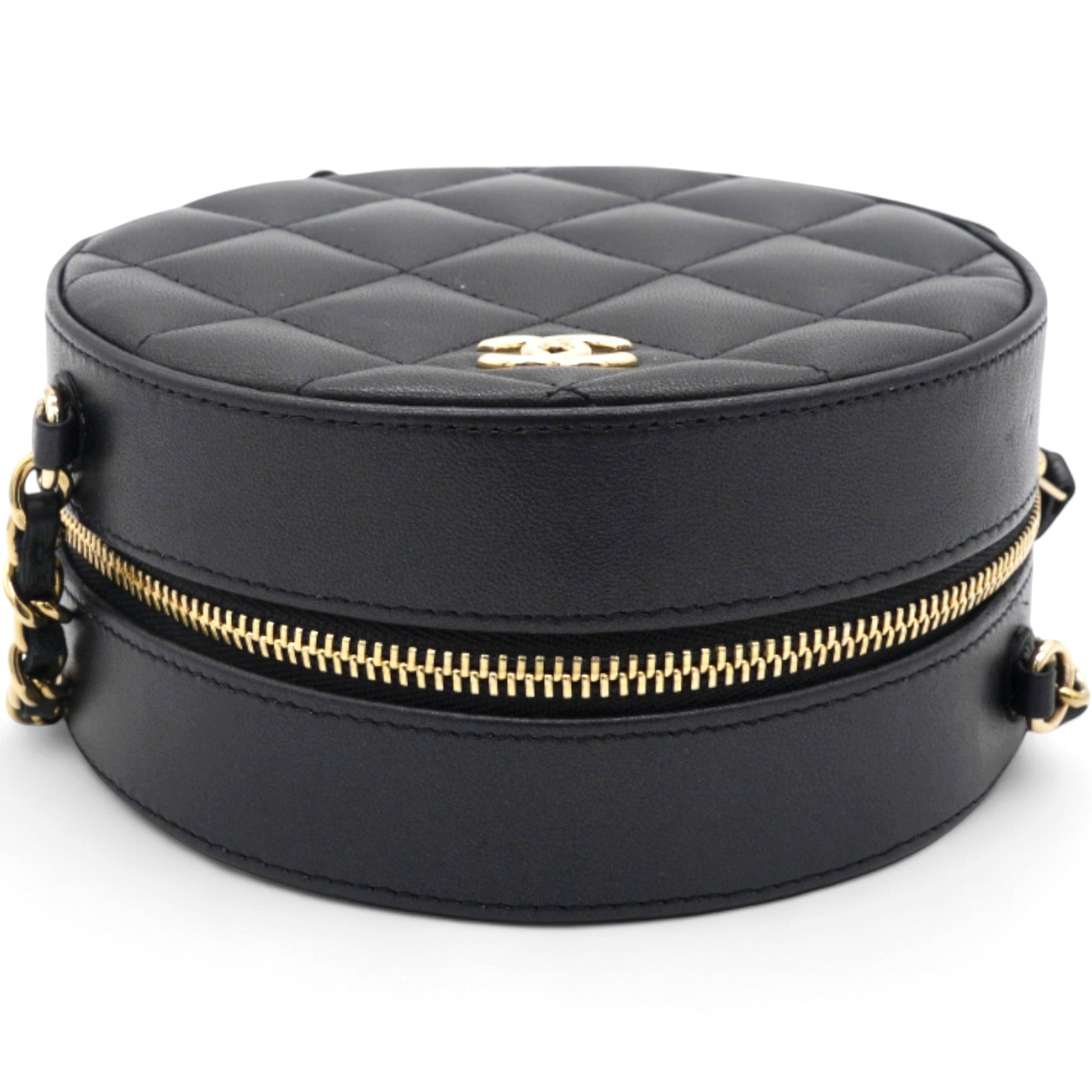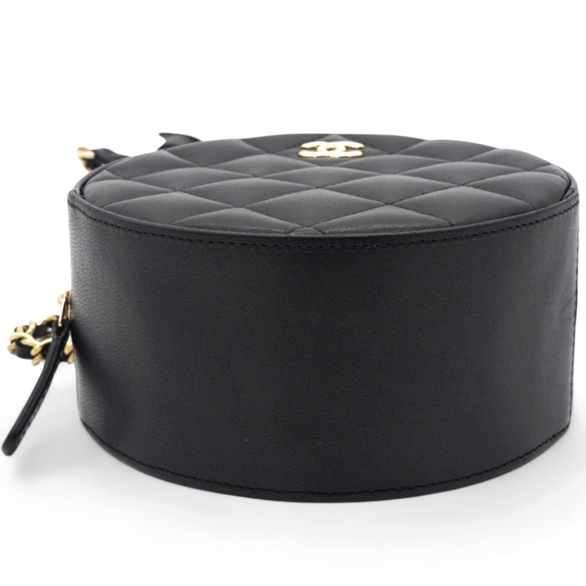 Chanel Mini Round Purse Vanity Lambskin Leather Black Bow Knot