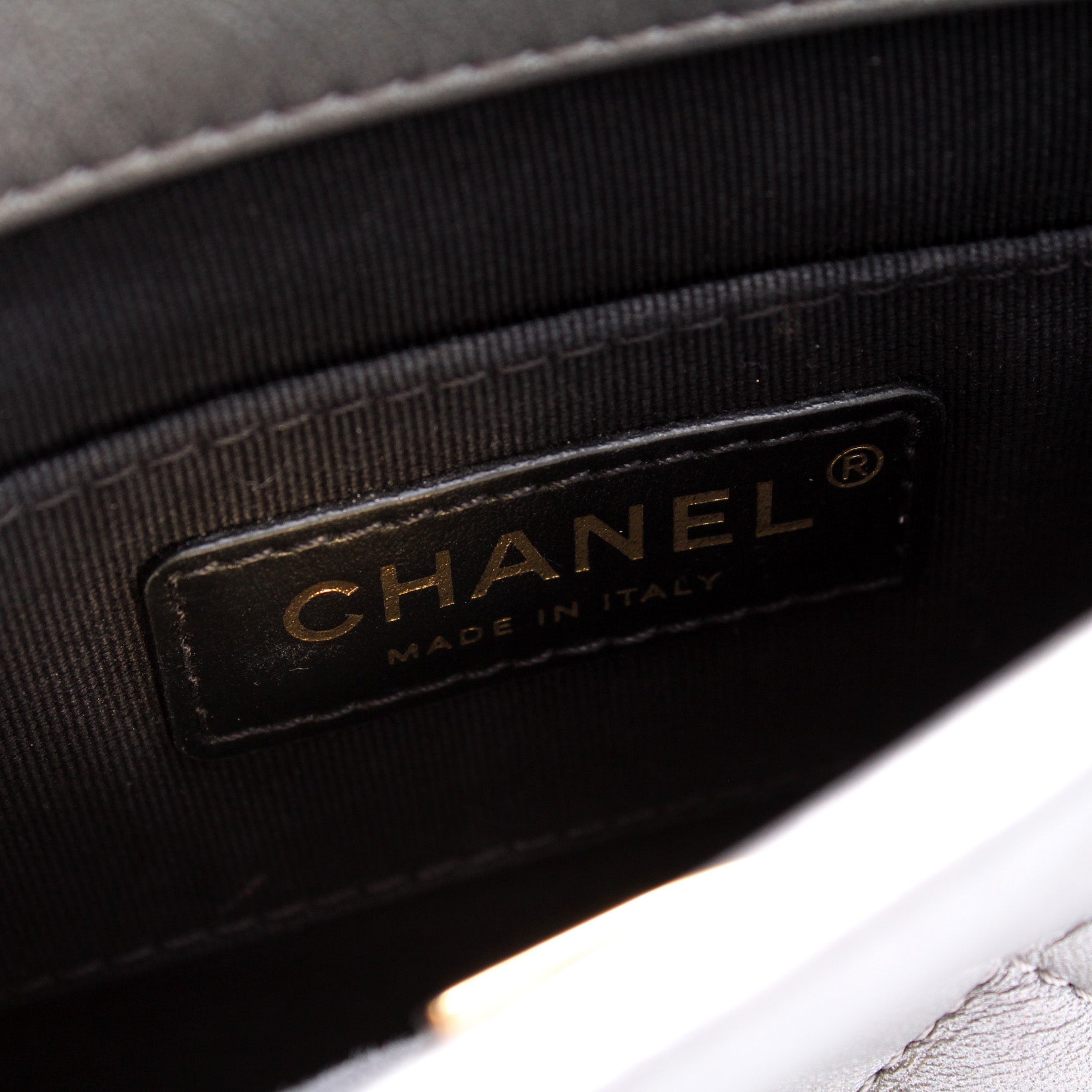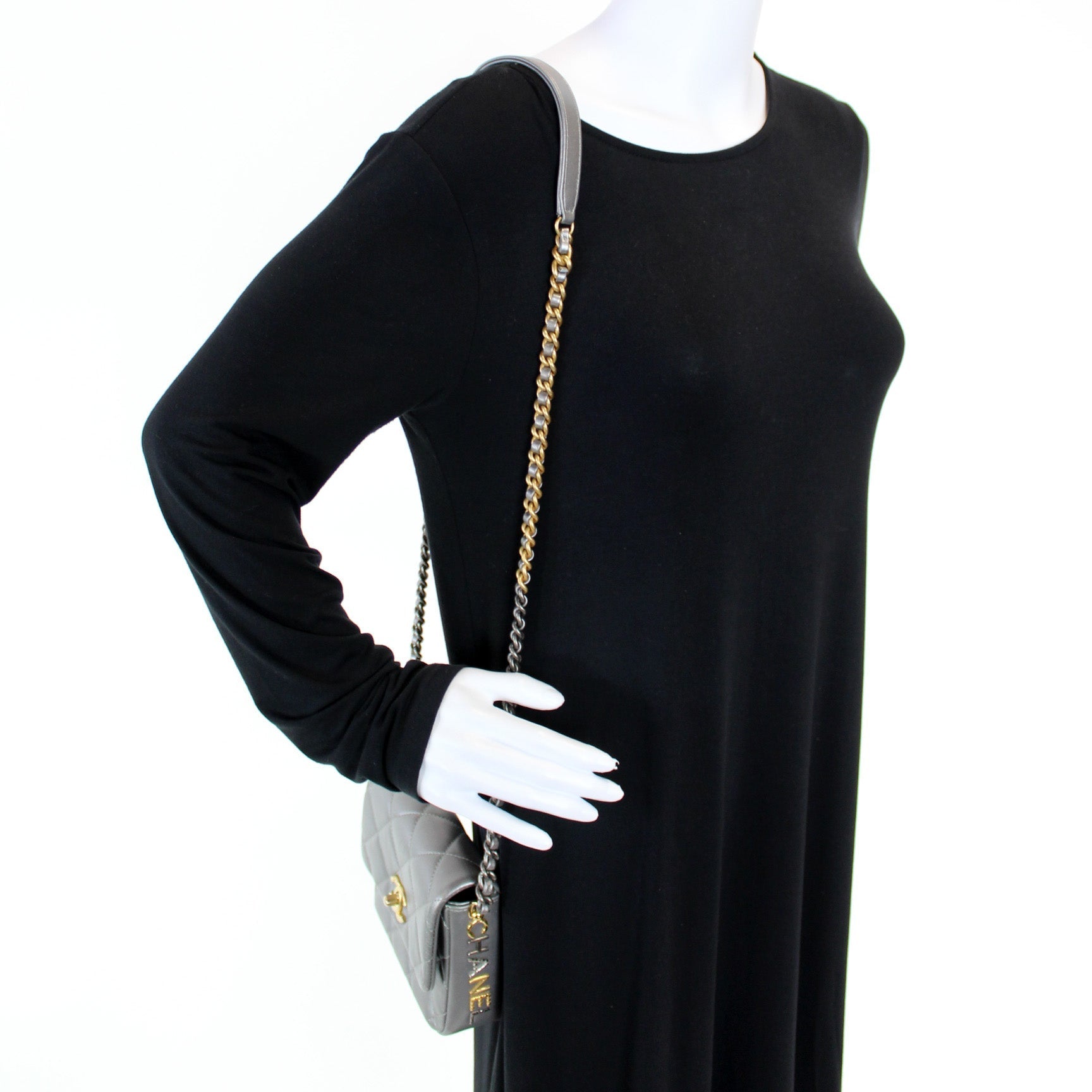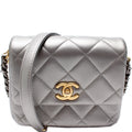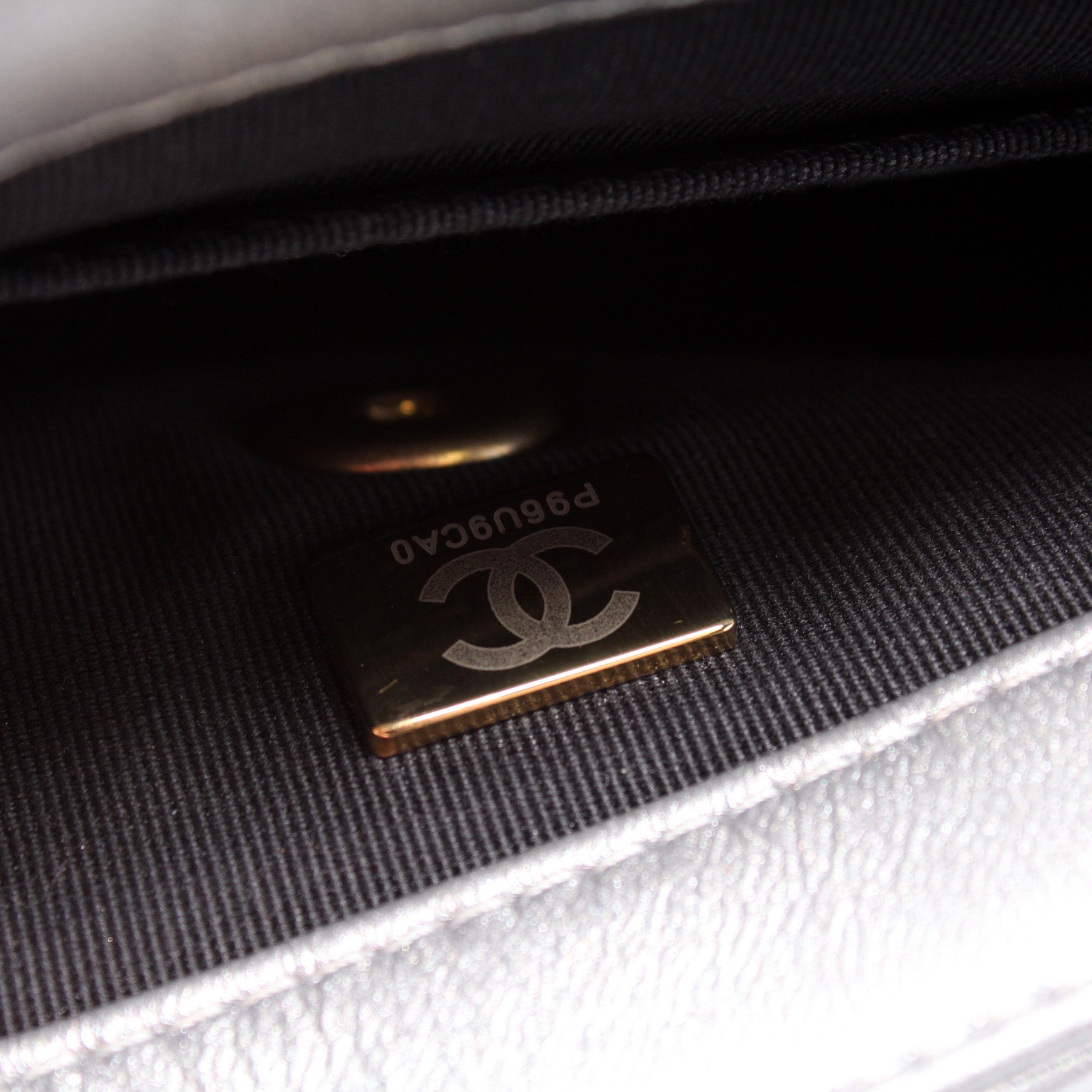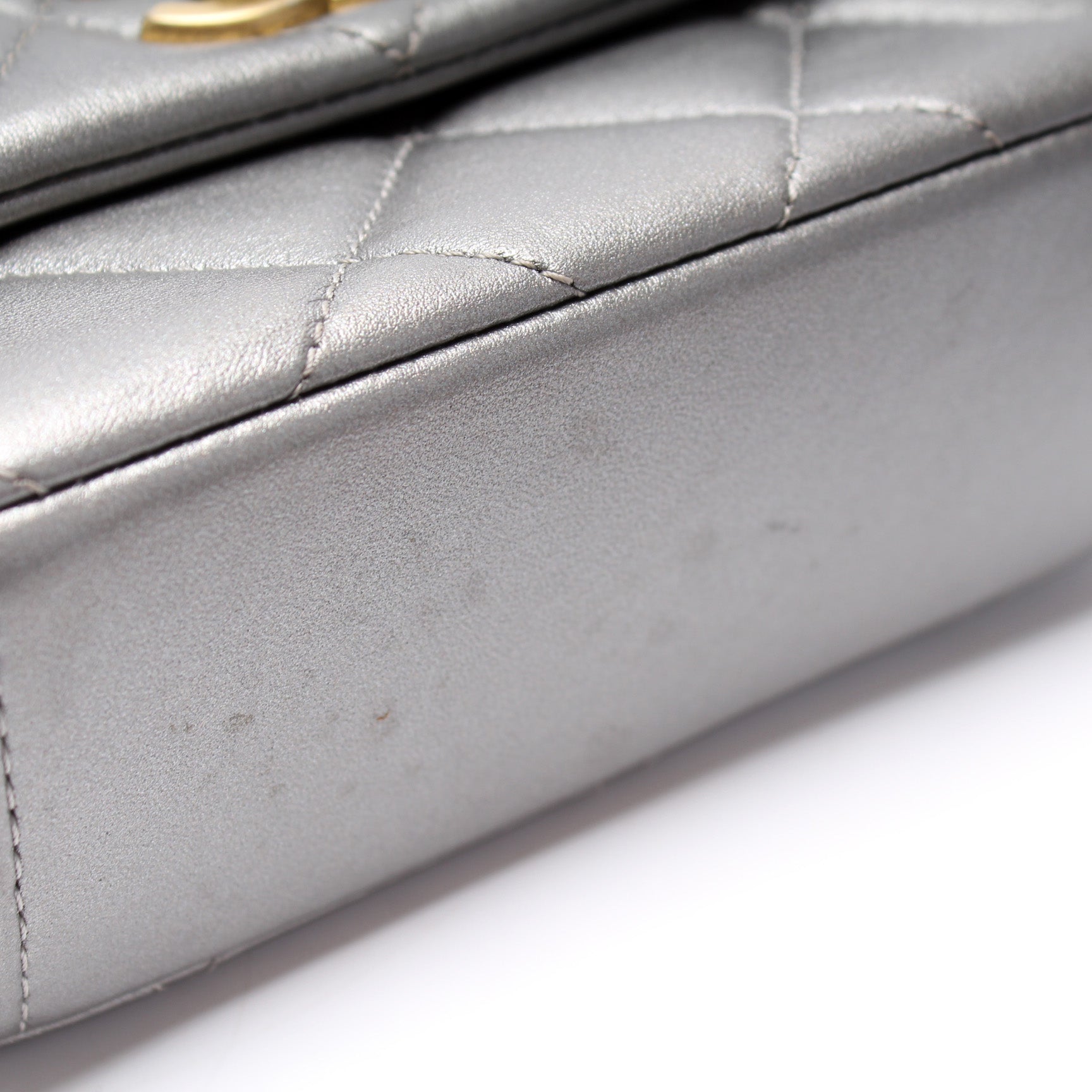 This Chanel Mini Side Note Mettalicis eye catching bag. The exterior is in the classic Chanel Lambskin leather.