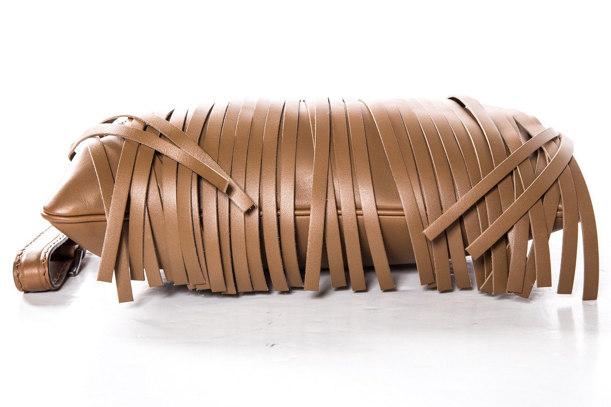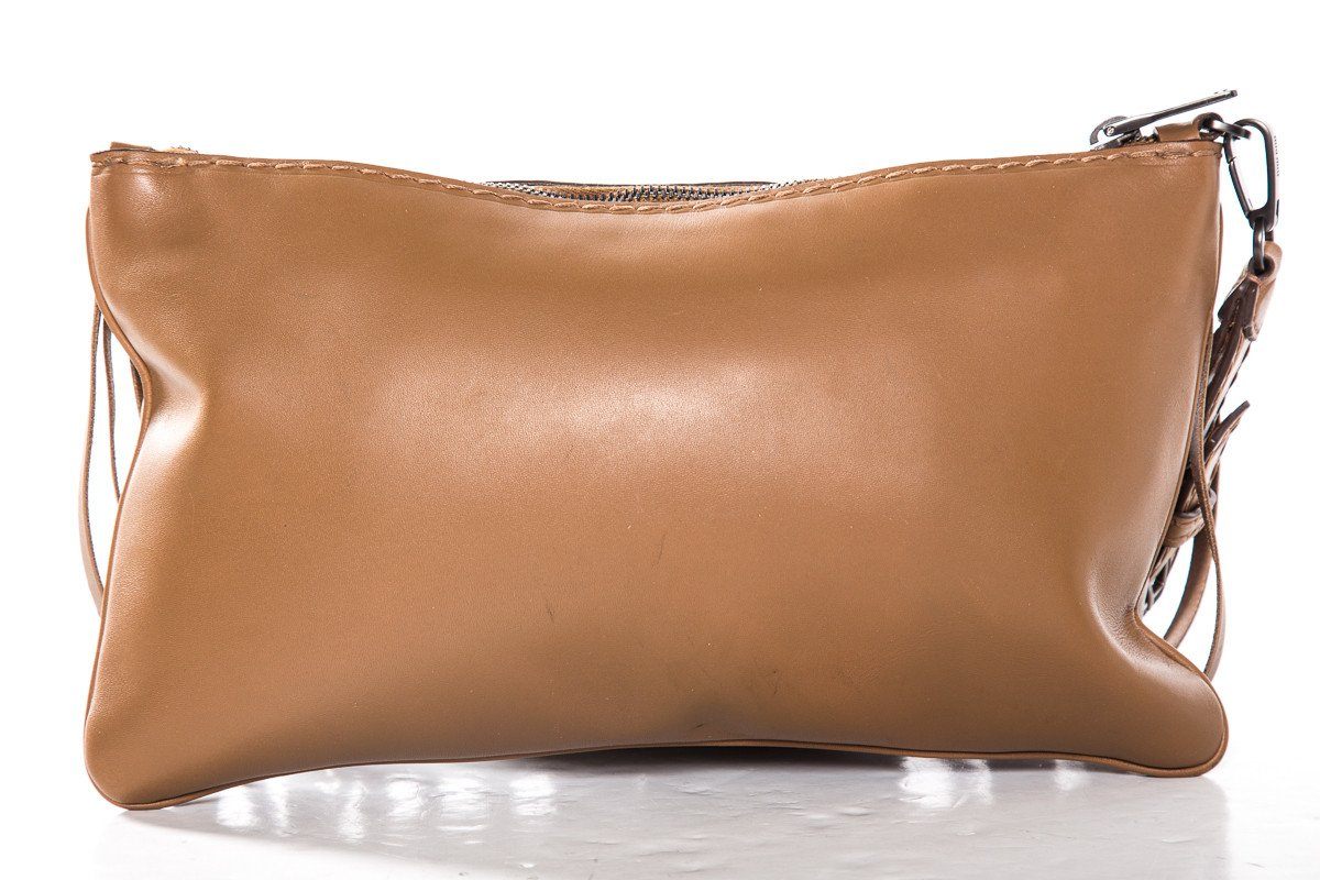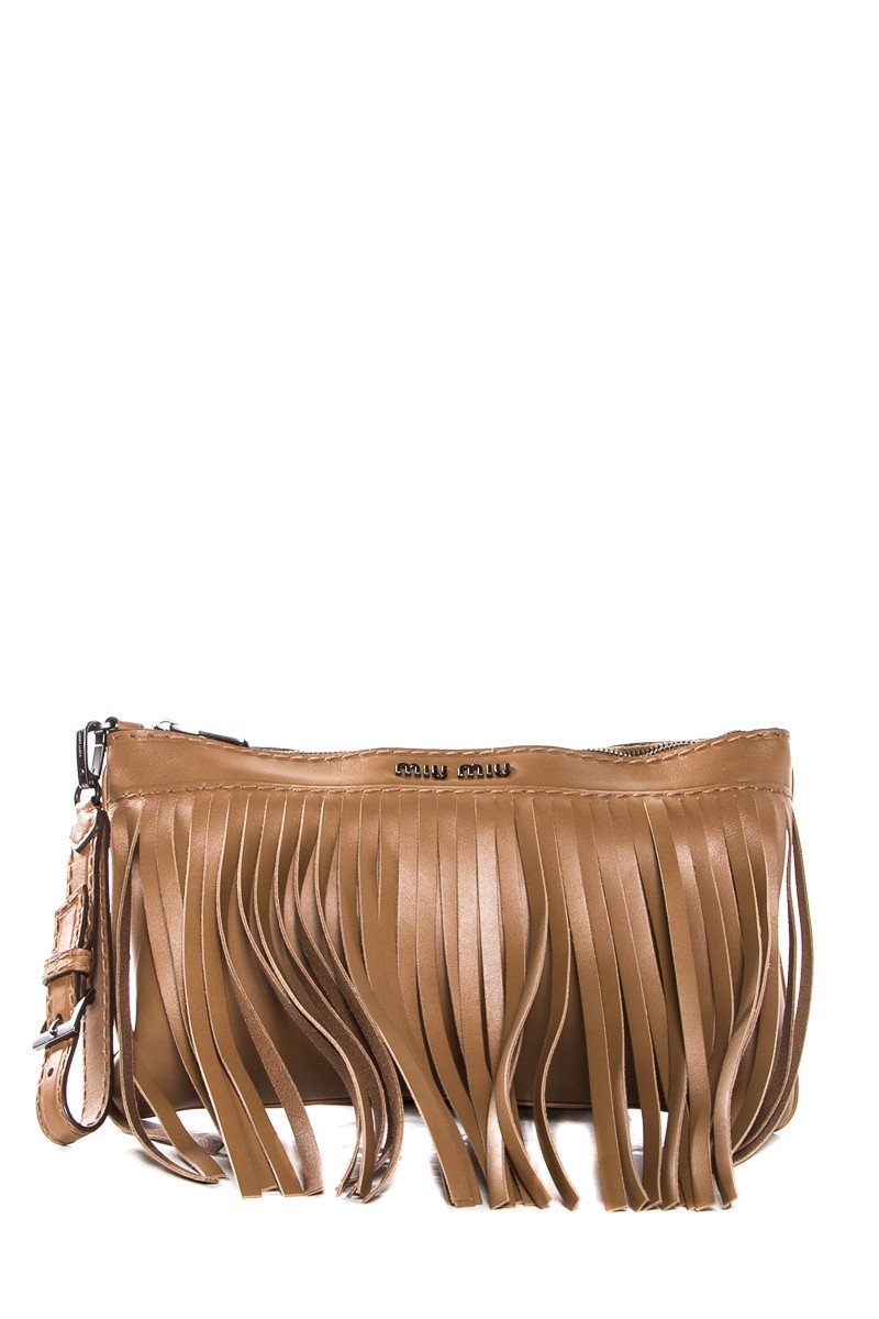 Miu Miu Light Brown Fringe Detail Leather Wristlet Clutch