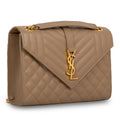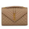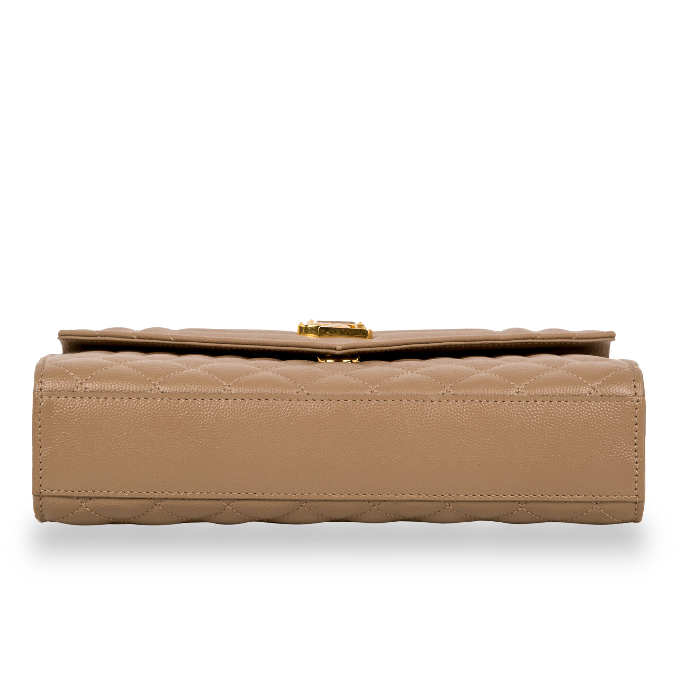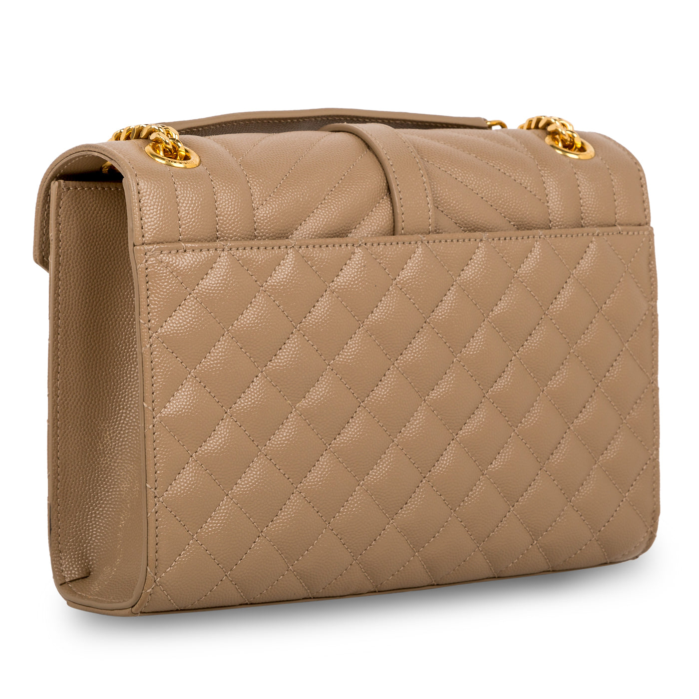 Saint Laurent’s vision takes on a modern slant with collections that pay homage to the French label’s founding principles of youth and freedom. Under the helm of Anthony Vaccarello, the French fashion house introduced the Mixed Quilted Leather Satchel Bag in 2019 and it has been a hit ever since. Widely famed for their enviable silhouette and assortment of sizes, the Saint Laurent Mixed Quilted Leather Satchel Bag in Beige is a highly-sought after piece. The handbag exudes sophistication throughout, from its mixed-quilted matelassé leather to its gilded chain strap and grosgrain lining. Its interior features a spacious storage compartment with a single large storage space alongside a slip pocket.