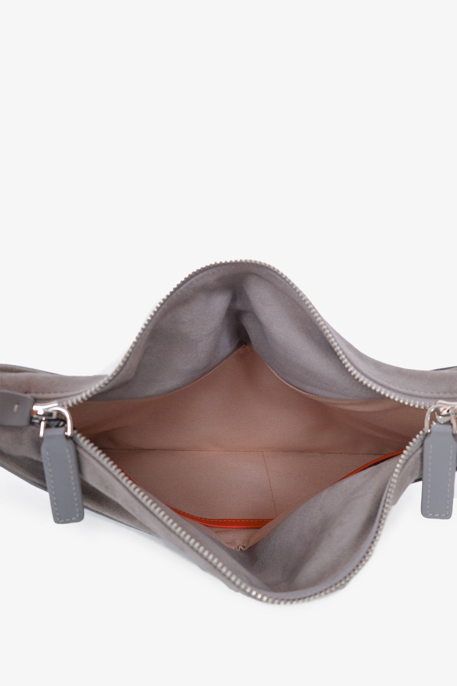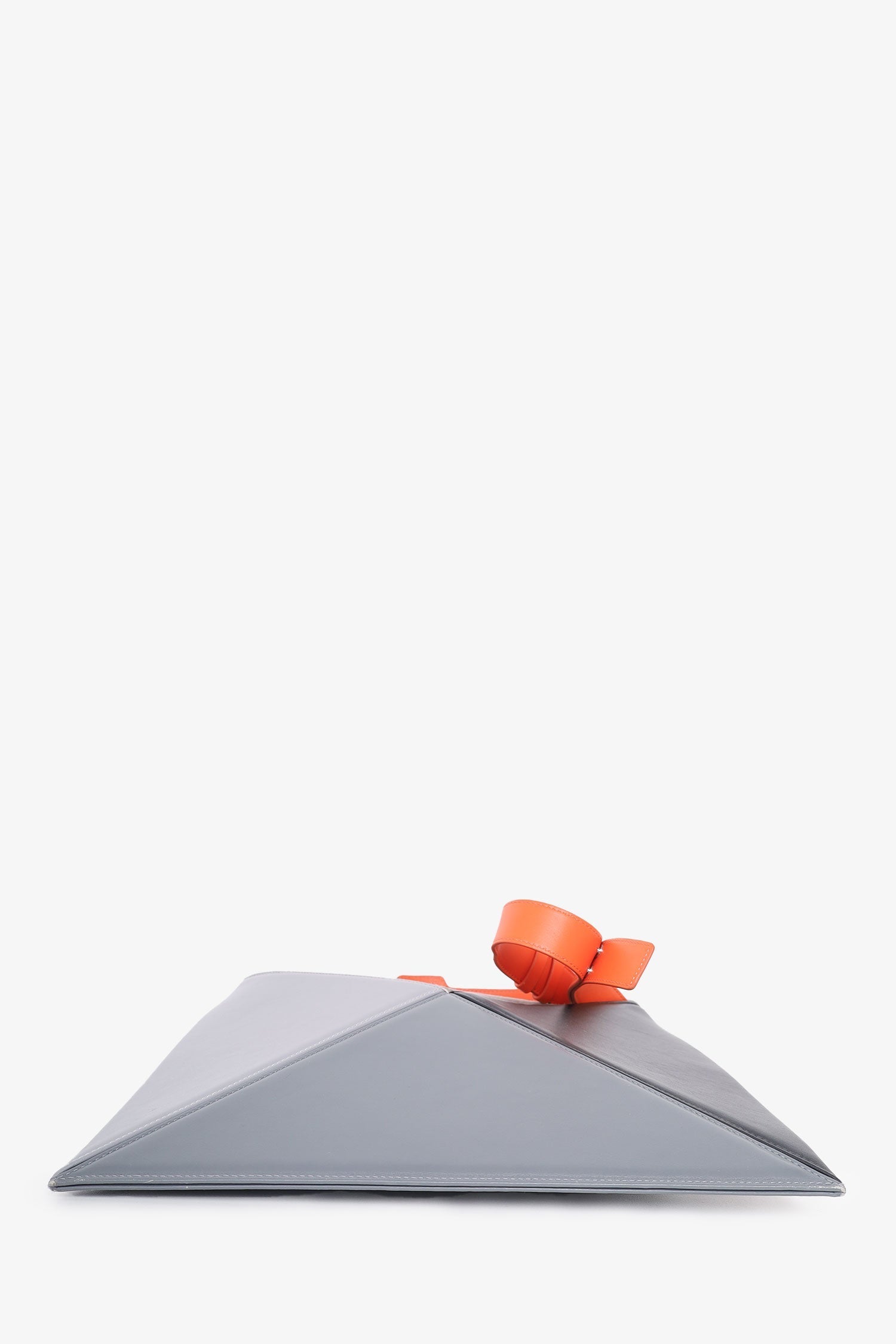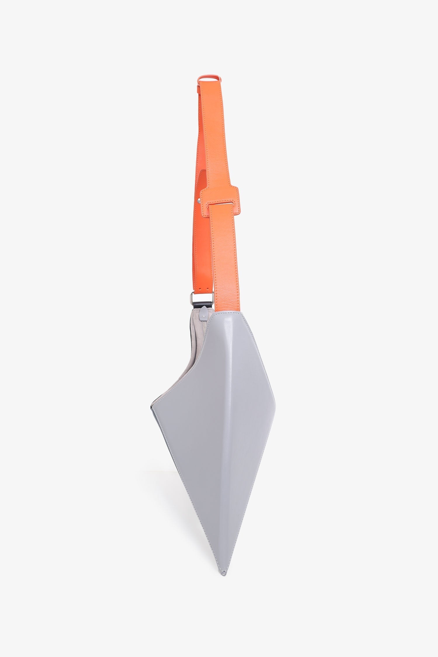 Mlouye Black/Gray Geometric Leather Flex Shoulder Bag. Zip closure. Two internal slip pockets. Silver-tone hardware. Tonal stitching.