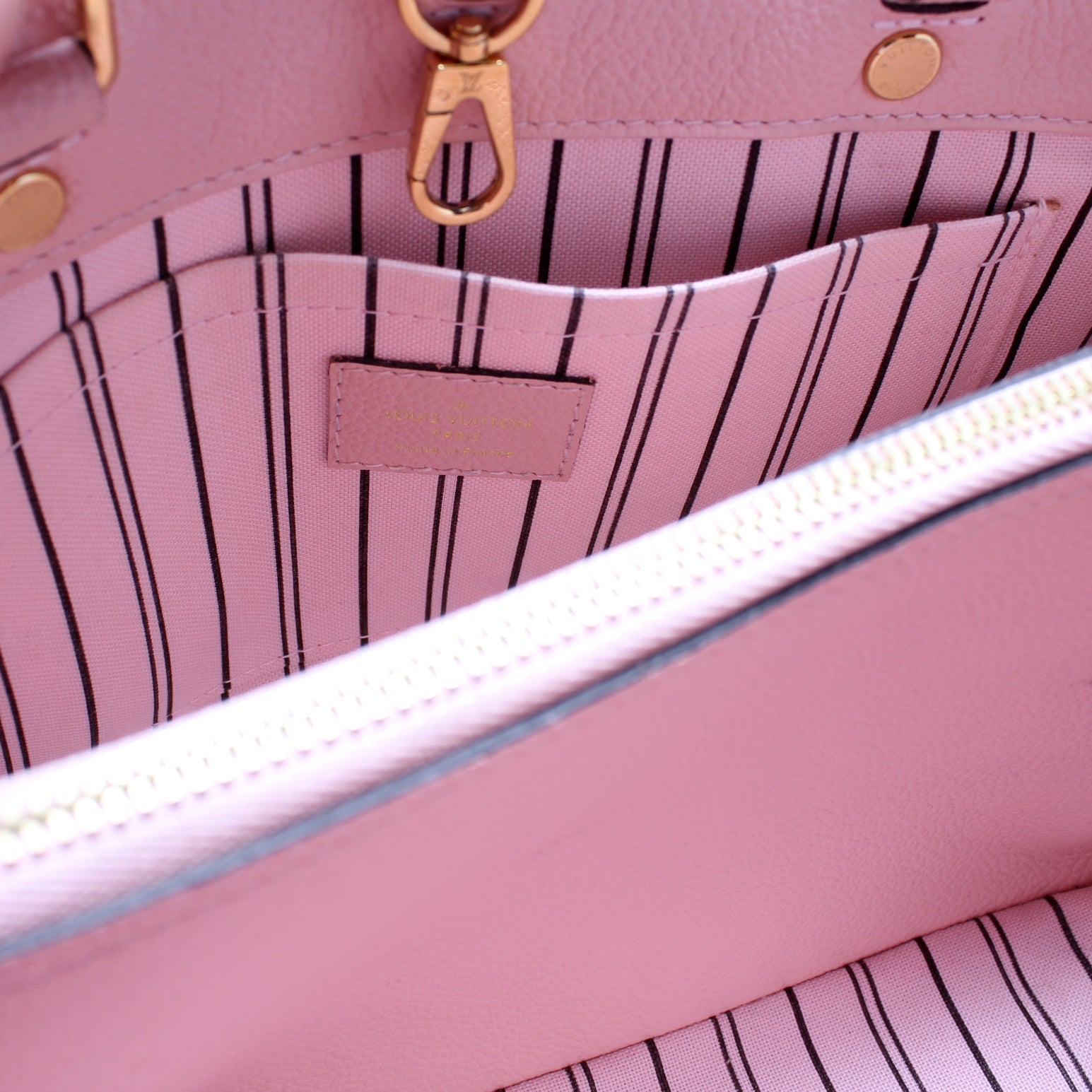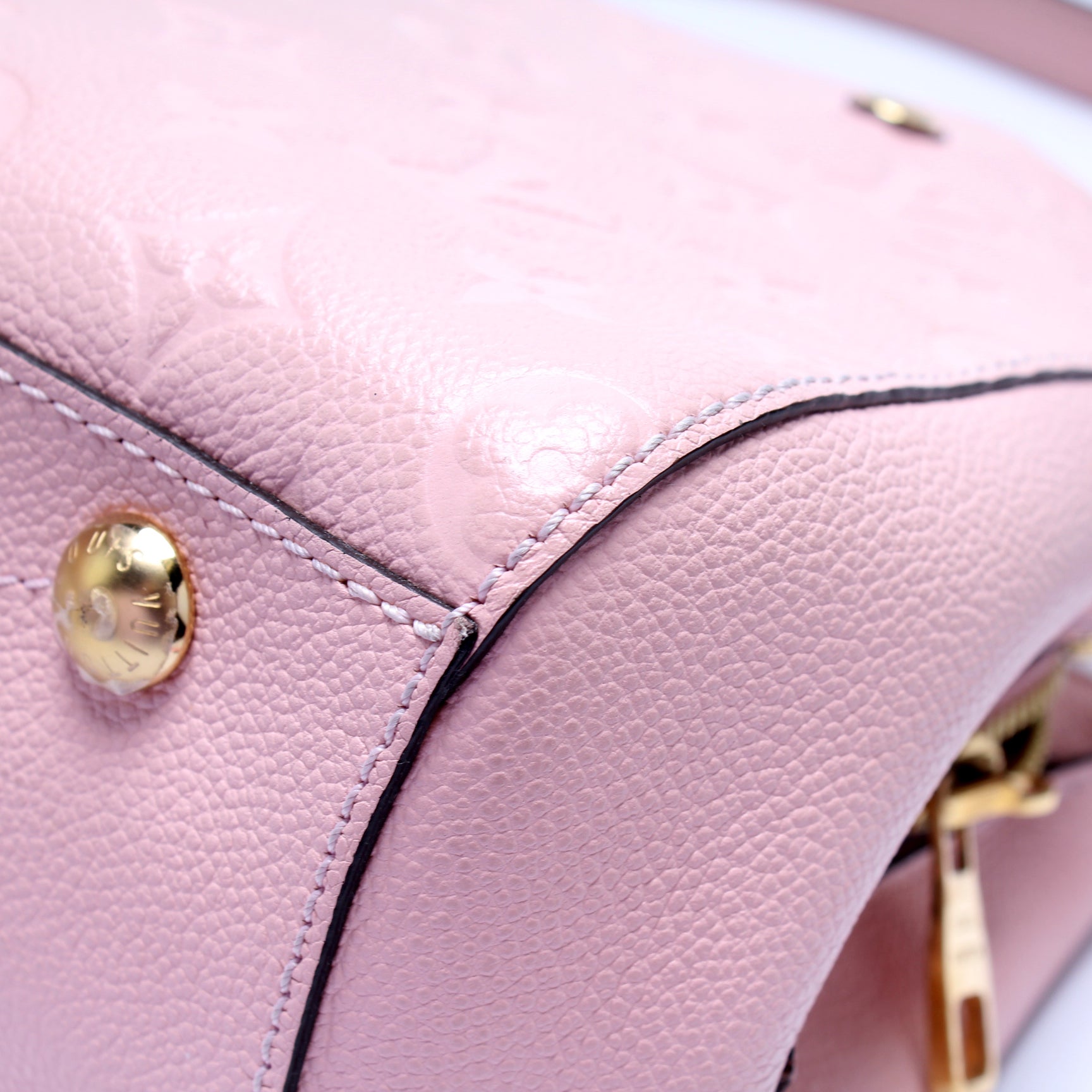 This Louis Vuitton Montaigne BBis eye catching bag. The exterior is in the classic Louis Vuitton Empreinte leather.
