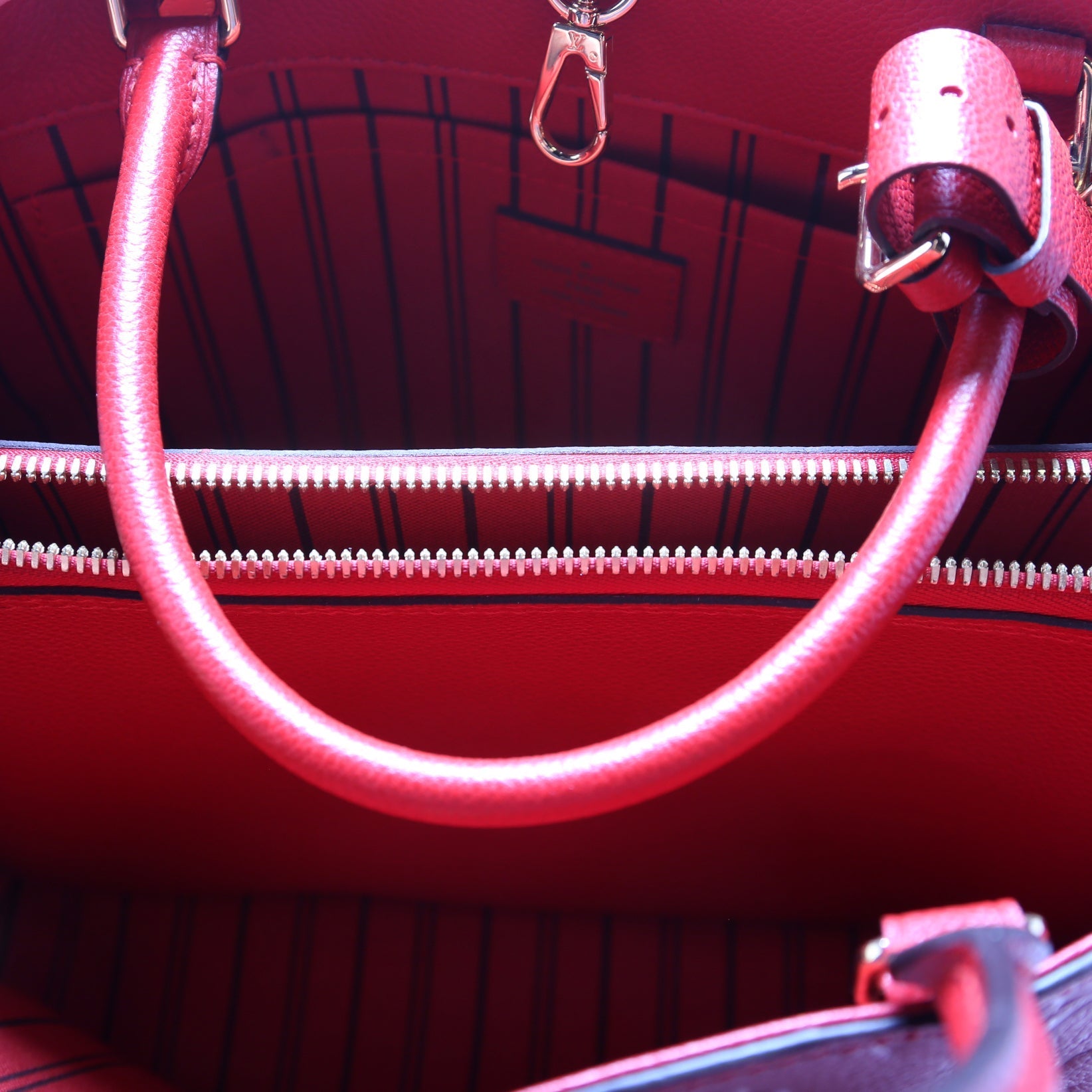 This Louis Vuitton Montaigne MMis eye catching bag. The exterior is in the classic Louis Vuitton Empriente leather.