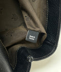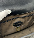 - Interior is crafted from brown, logo pattern fabric, features one main compartment and a side slip pocket