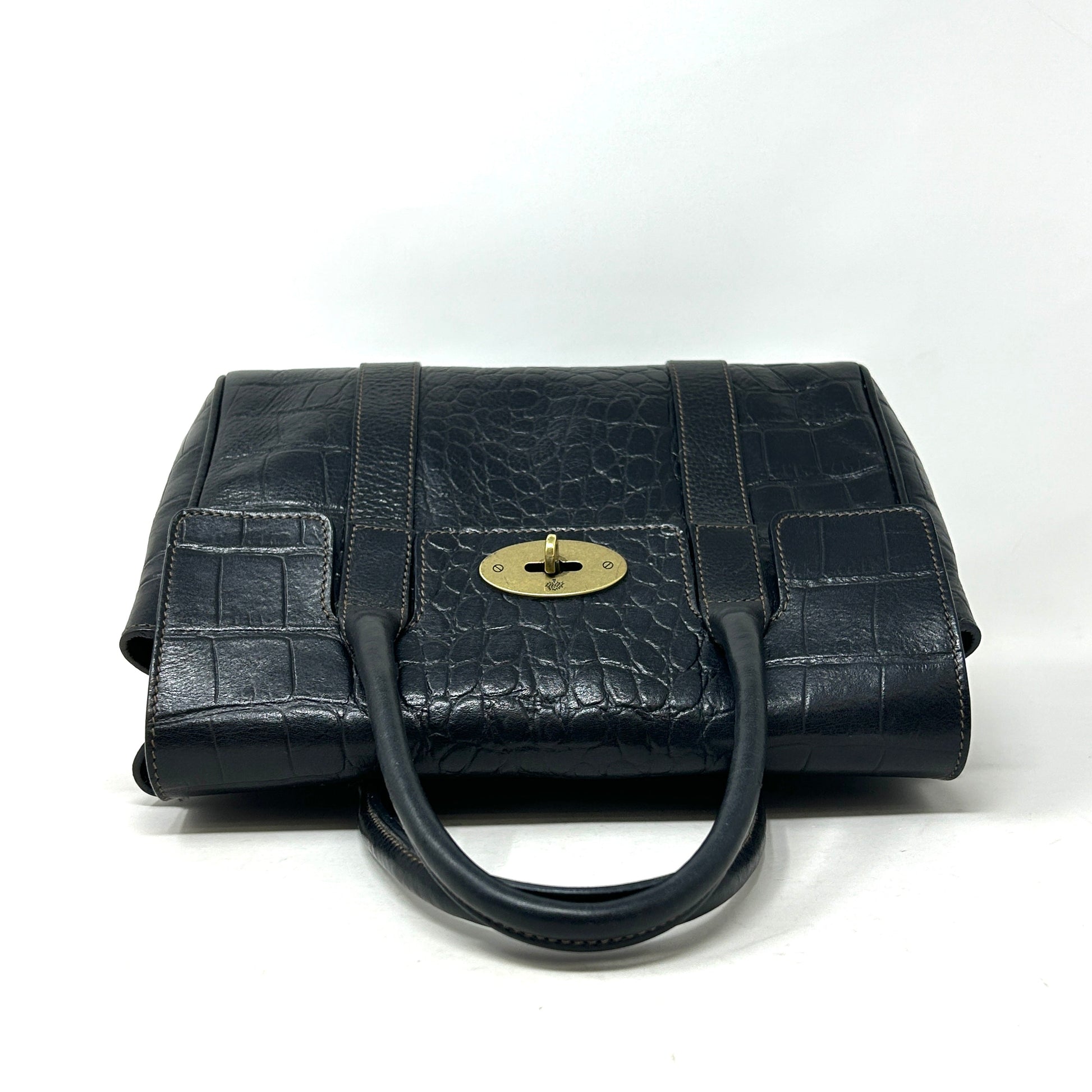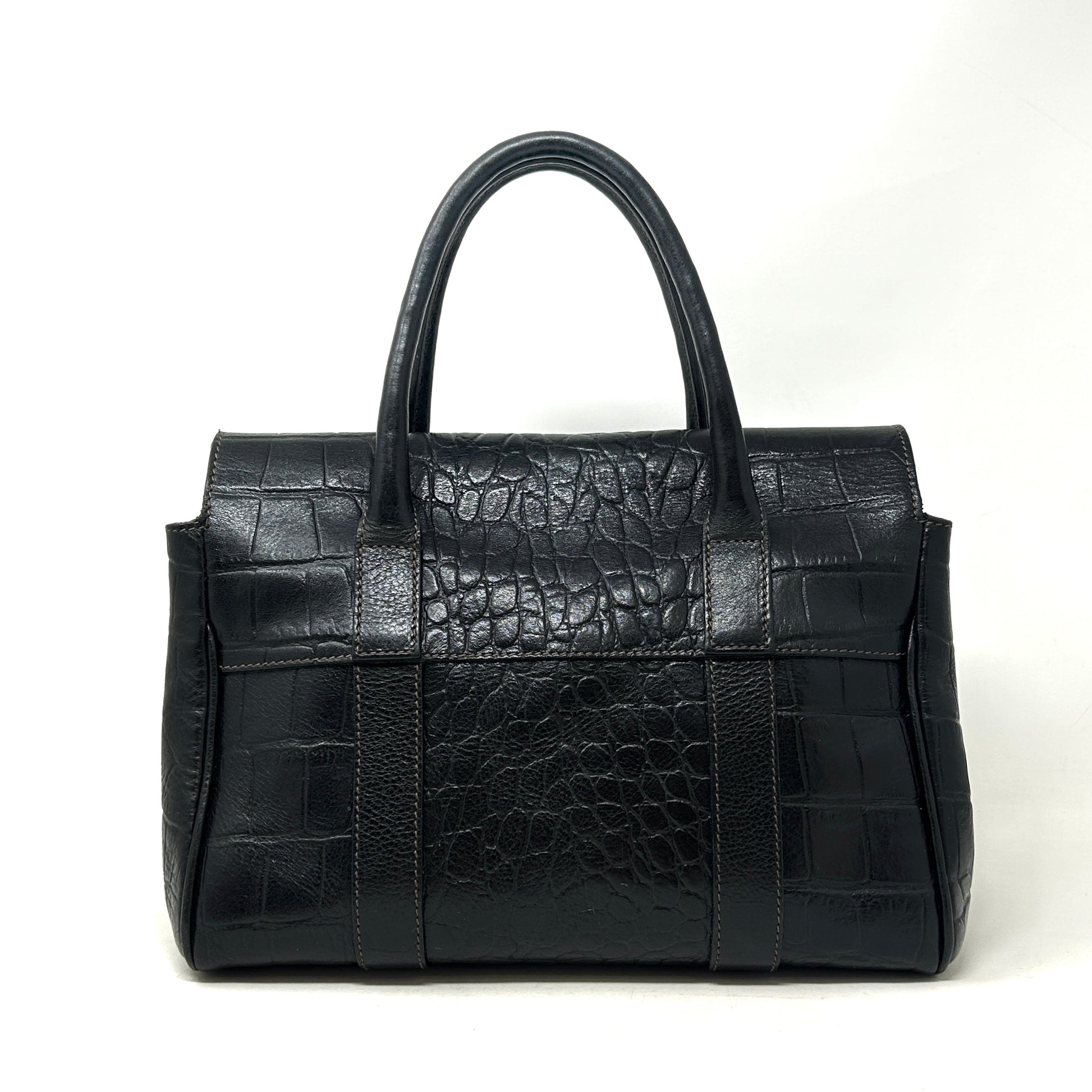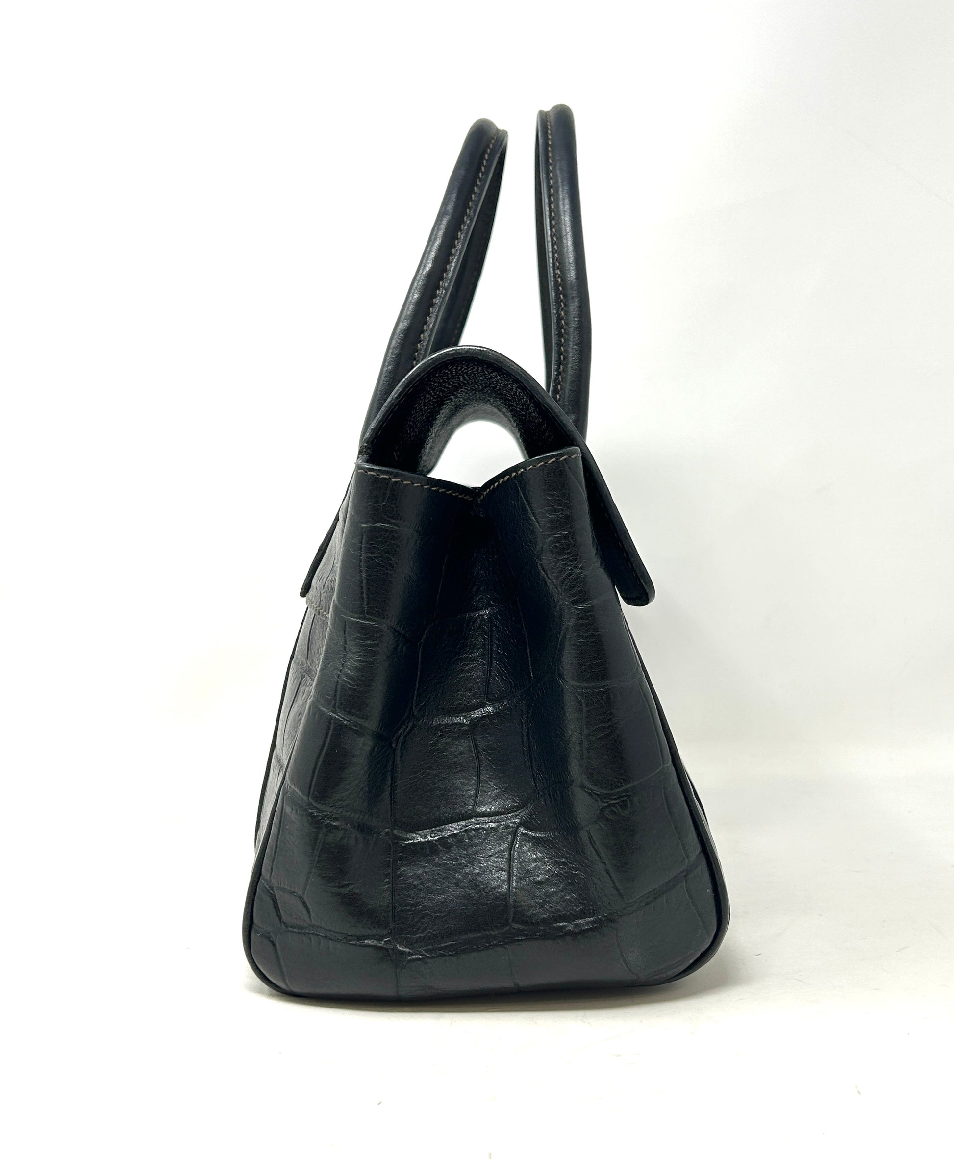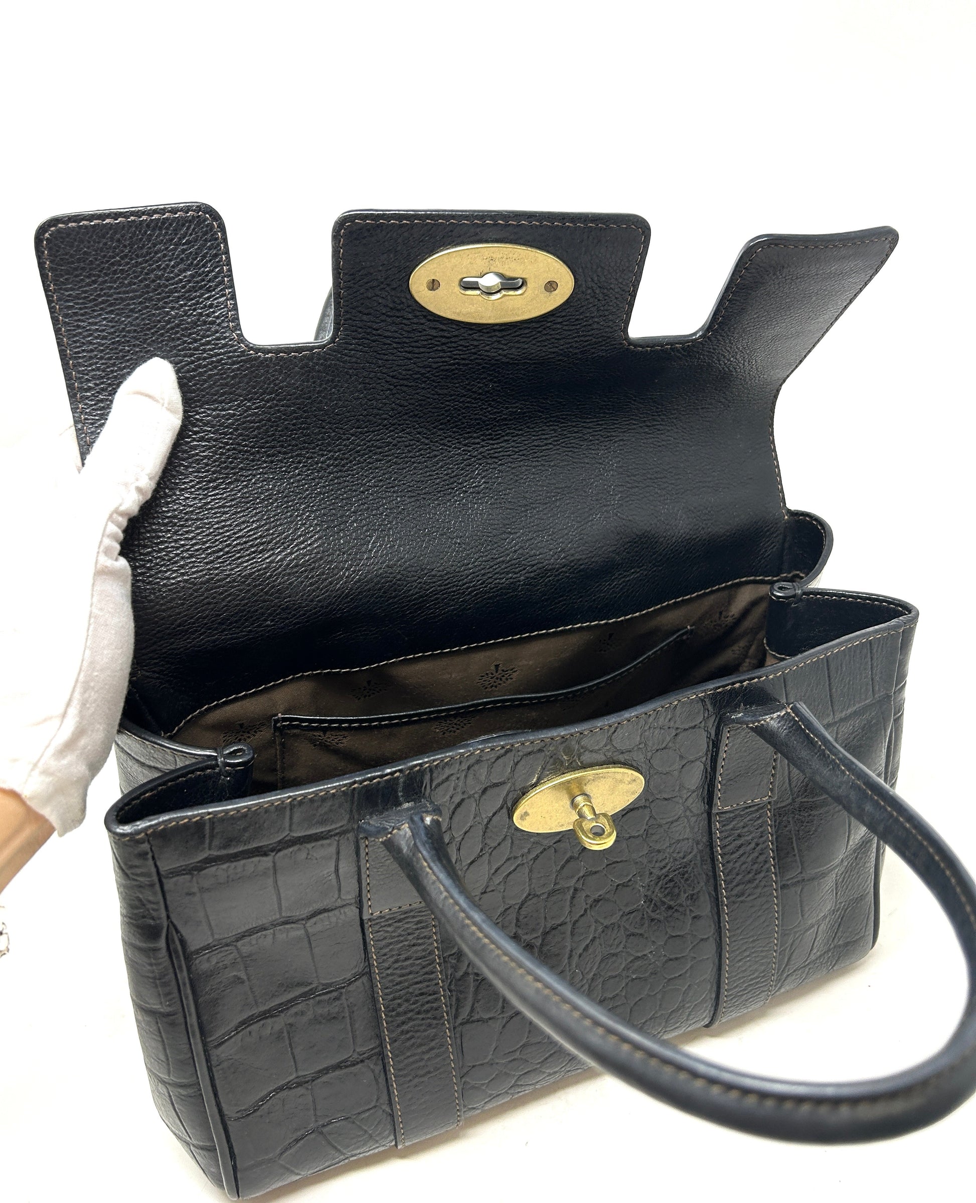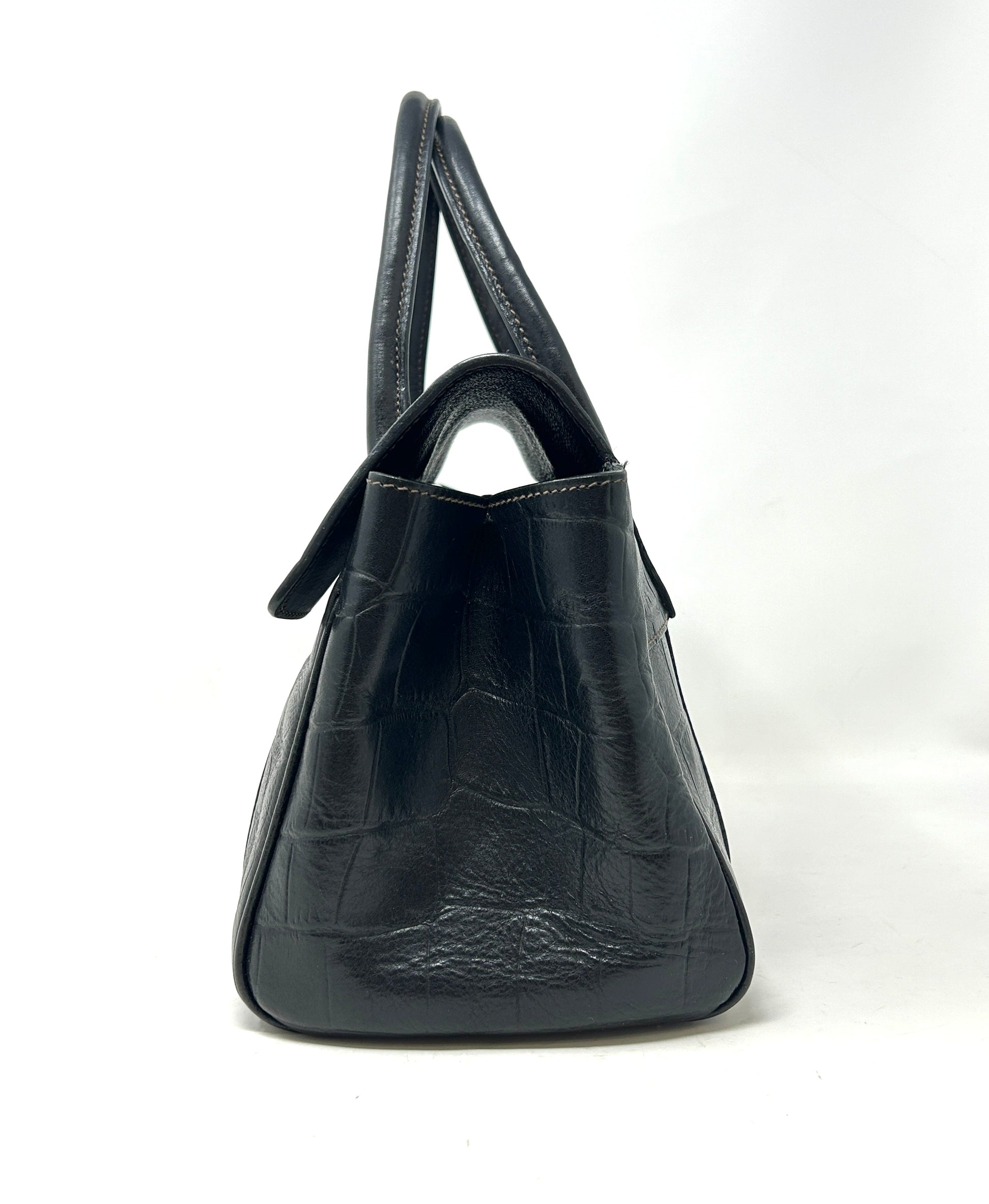 Mulberry Bayswater Black Leather Mock Croc Small Tote Handbag