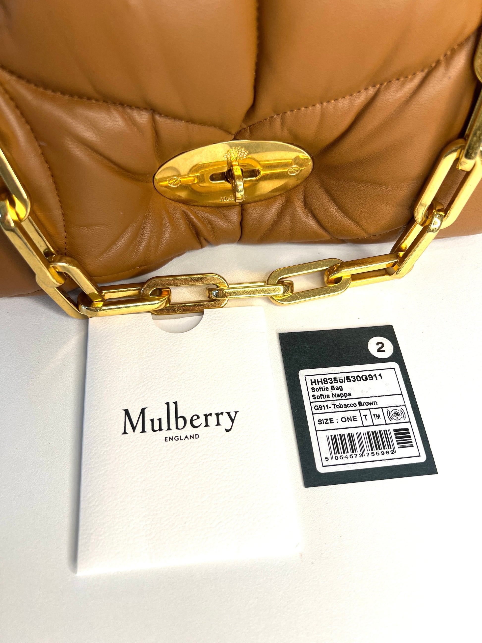 Mulberry Softie Tobacco Brown Pillow Nappa Shoulder Bag Preloved