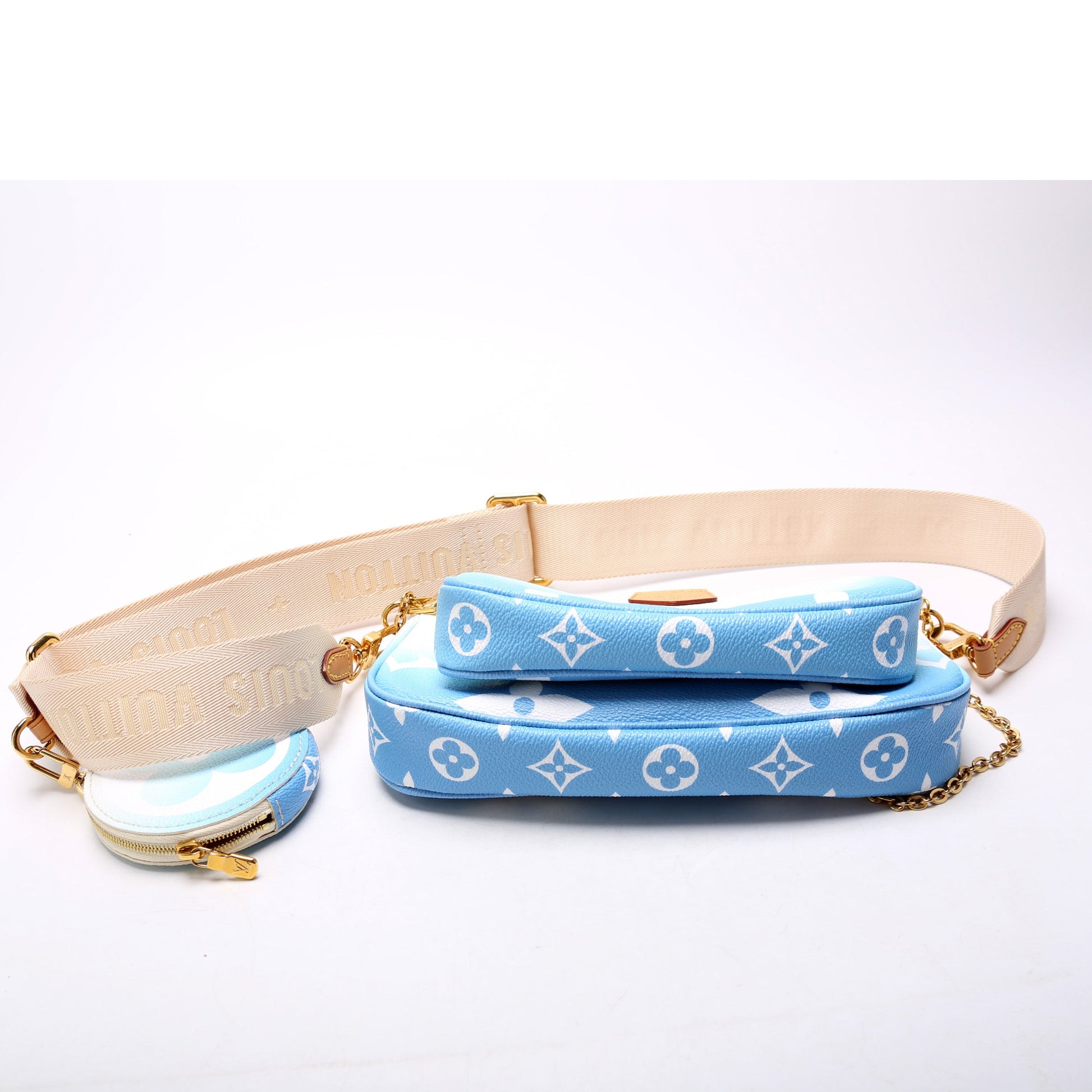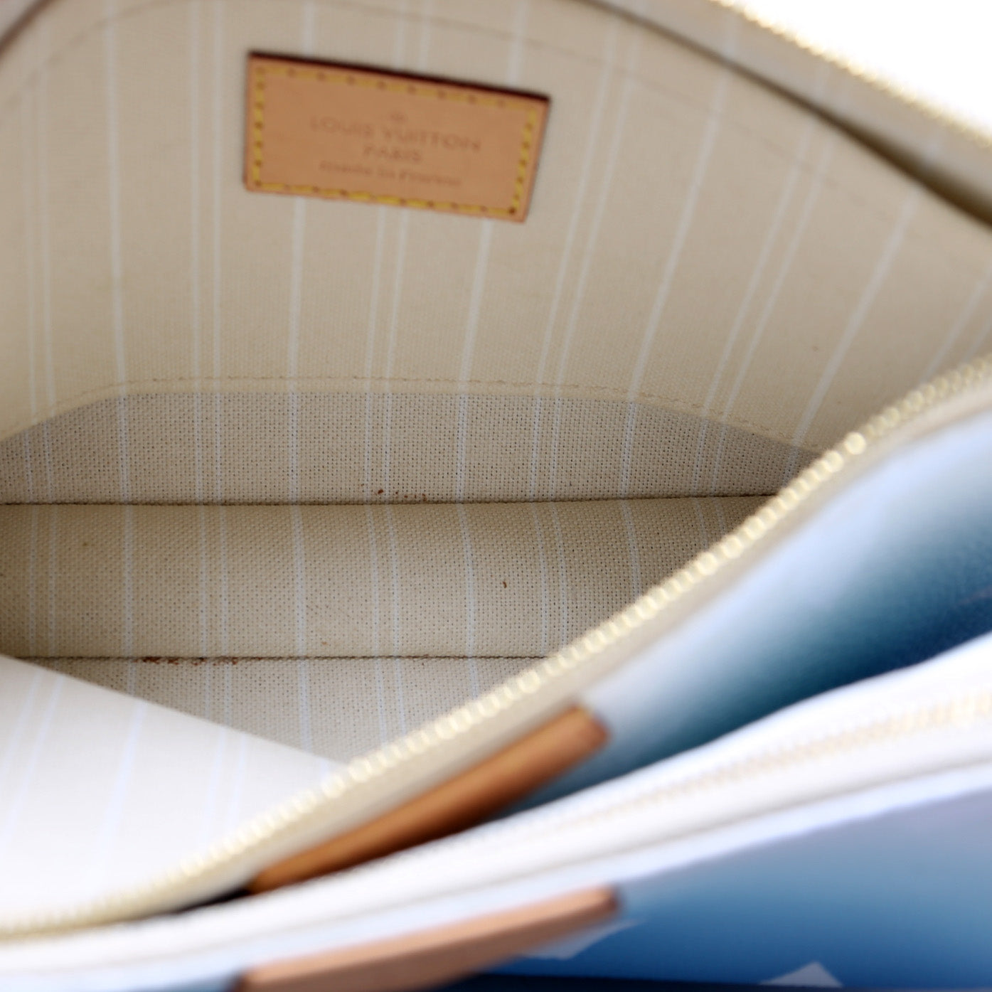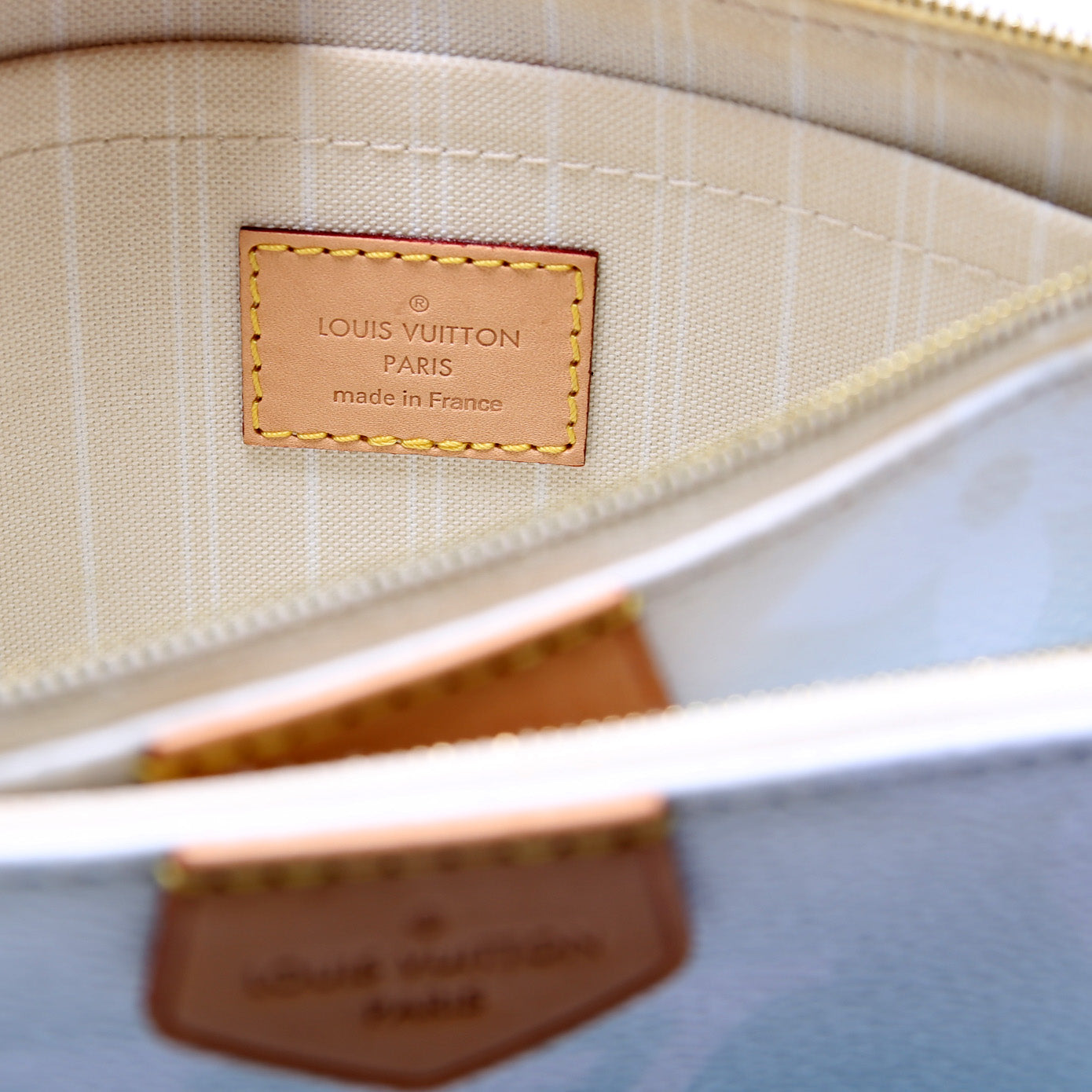 This Louis Vuitton Multi Pochetteis eye catching bag. The exterior is in the classic Louis Vuitton By the Pool coated canvas.